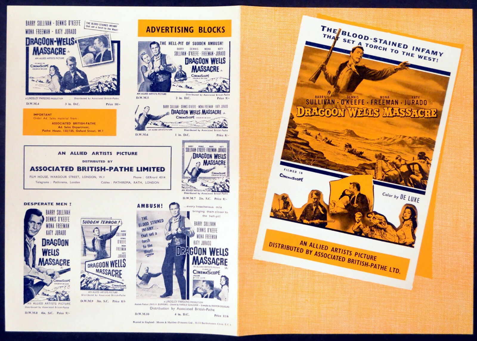 - Harold D. Schuster’s 1957 DRAGOON WELLS MASSACRE starring Barry Sullivan, Dennis O’Keefe, Mona Freeman, Katy Jurado and Sebastian Cabot.