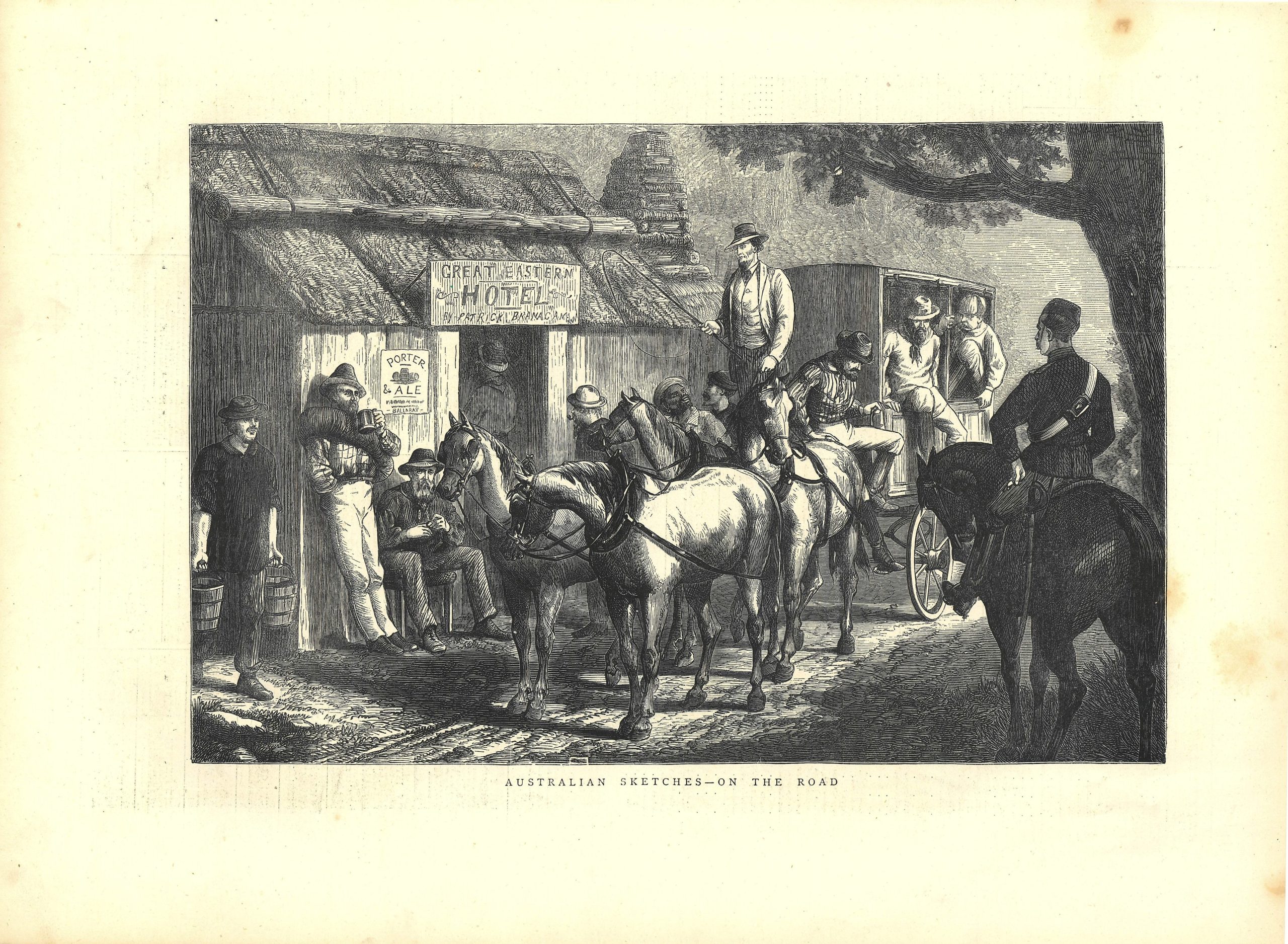 Original 11 3/4 inch x 7 3/4 inch Engraving titled AUSTRALIAN SKETCHES – ON THE ROAD.