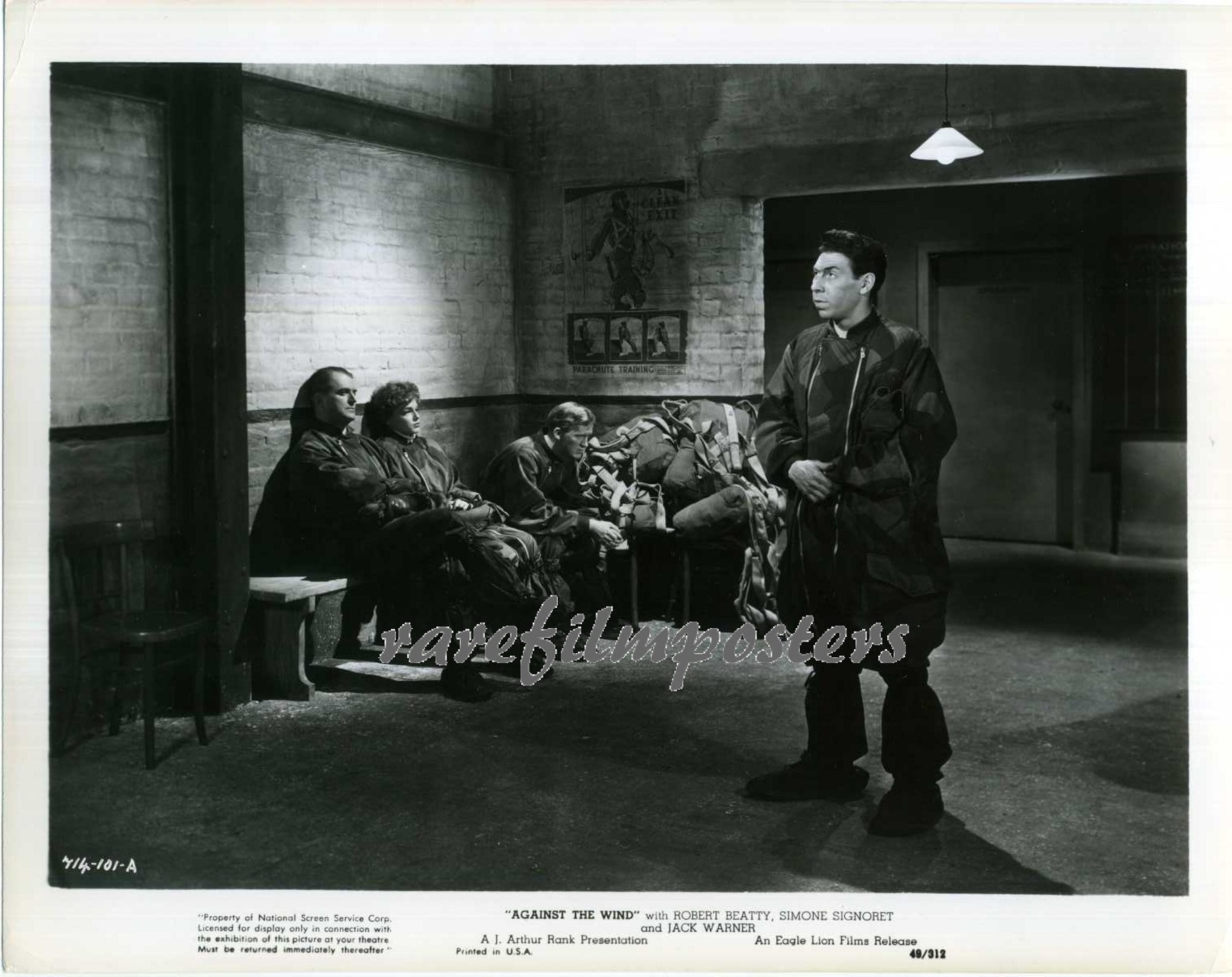 Original U.S. 10 inch x 8 inch Still of JACK WARNER, SIMONE SIGNORET, GORDON JACKSON & JOHN SLATER in the 1947 Charles Crichton Ealing Studios War Movie AGAINST THE WIND, written by T.E.B. Clarke.