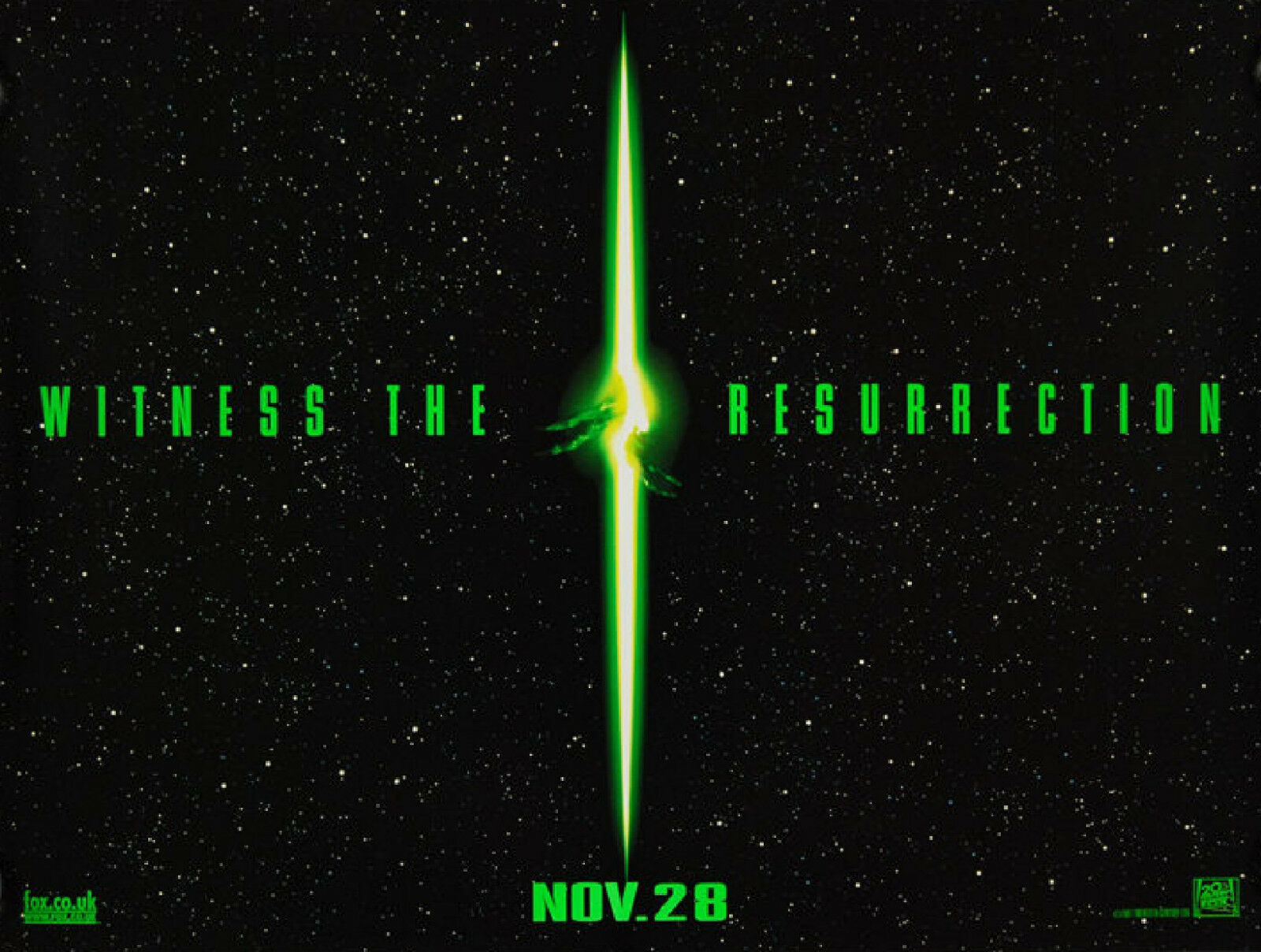 Original British 30 inch x 40 inch Double-Sided Quad Poster for the 1998 Jean-Pierre Jeunet Sci-Fi Movie ALIEN RESURRECTION, based on characters created by Dan O’Bannon & Ronald Shusett and starring Sigourney Weaver, Winona Ryder, Dominique Pinon, Ron Perlman, Gary Dourdan, Michael Wincott, Kim Flowers, Dan Hedaya, J.E. Freeman, Brad Dourif and Raymond Cruz.