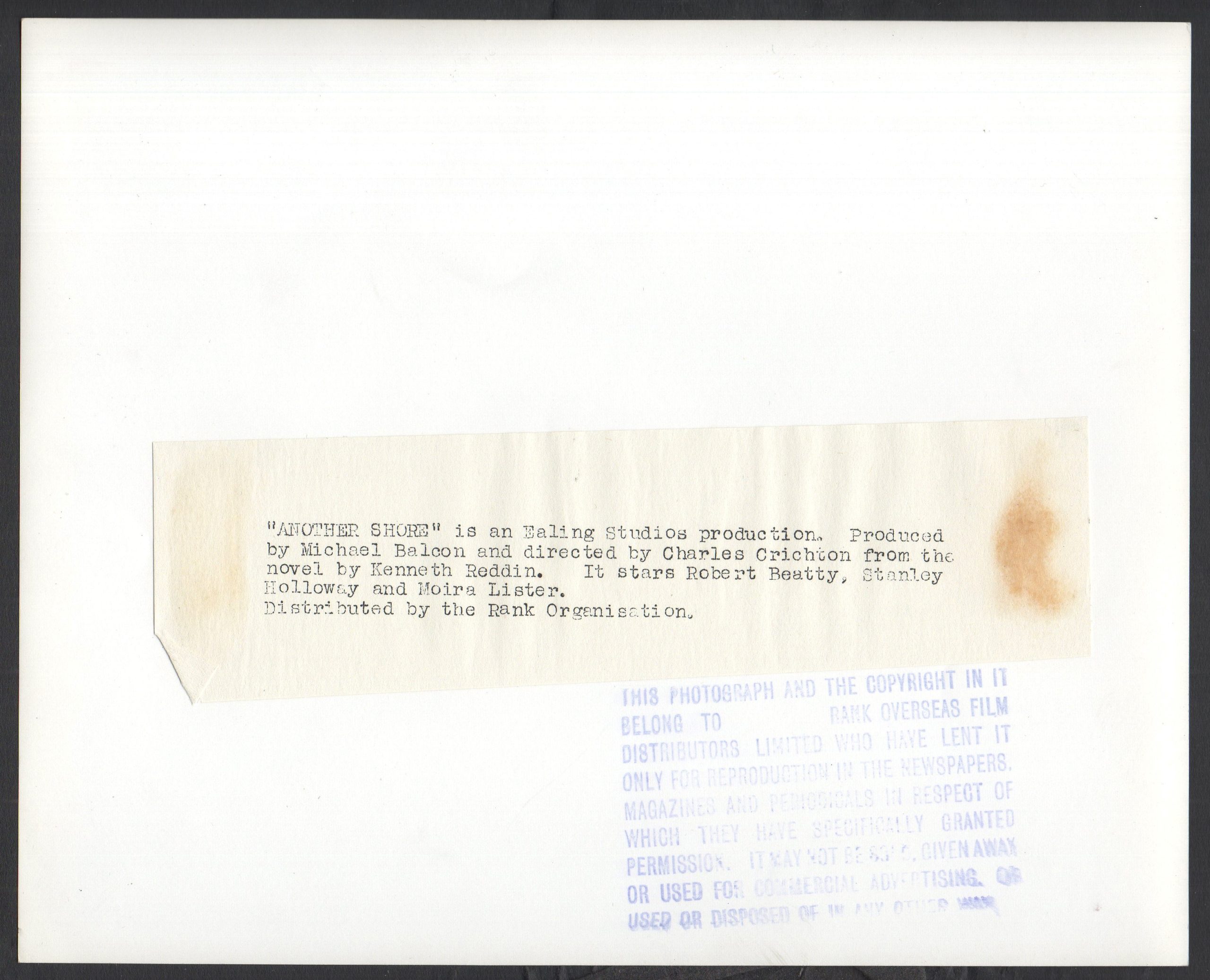 Original British 10 inch x 8 inch Portrait of MOIRA LISTER in the 1948 Charles Crichton Ealing Studios Comedy ANOTHER SHORE, based on the novel by Kenneth Reddin.