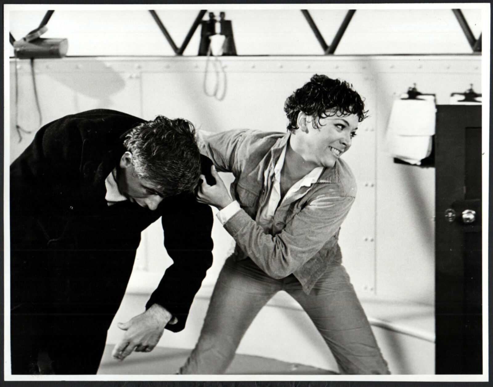 Original 10 inch by 8 inch Still of LINDA THORSON as Tara King and JOE DUNNE in the 1968 Ray Austin Season 7 Episode 8 ALL DONE WITH MIRRORS for the TV Cult Series THE AVENGERS.