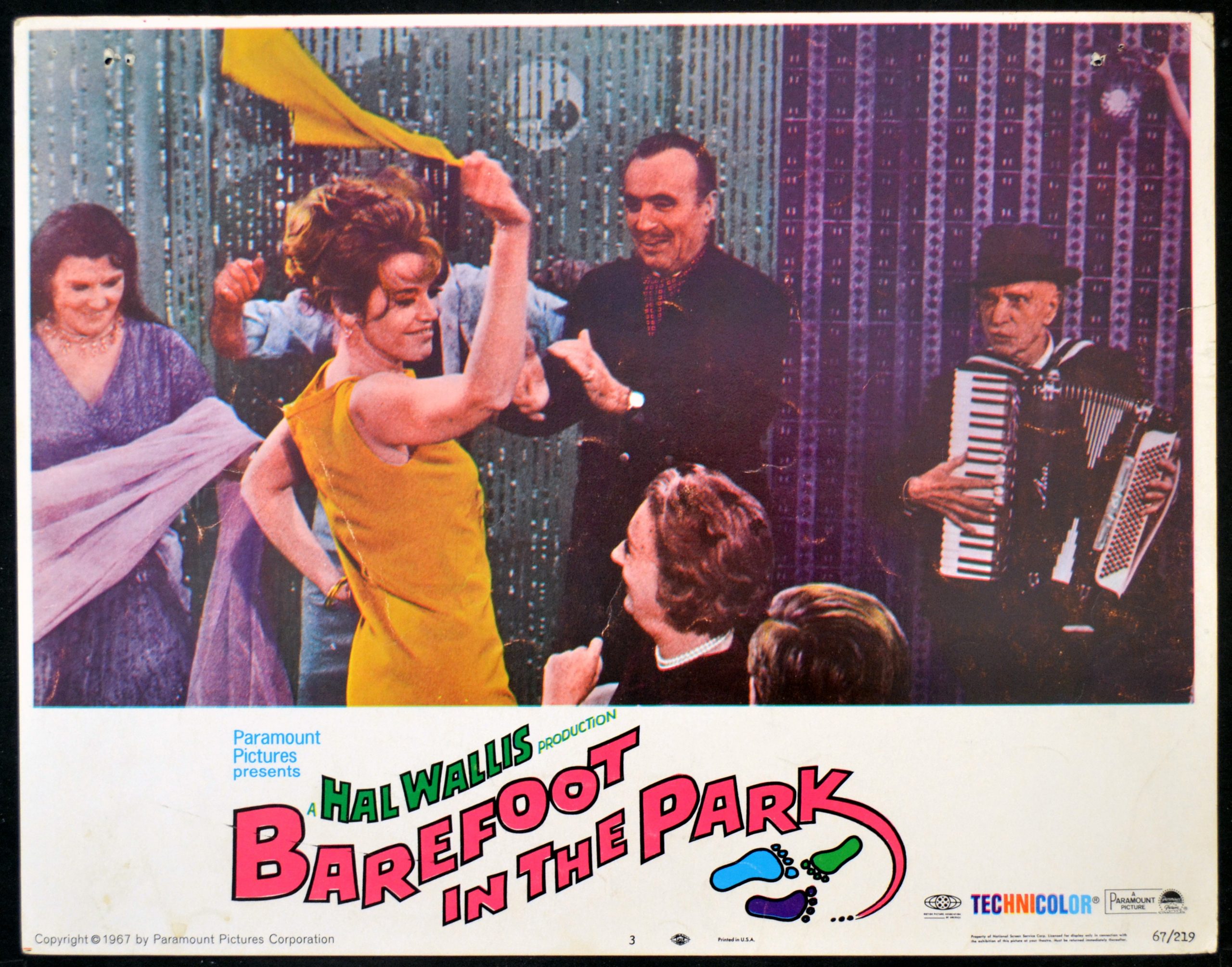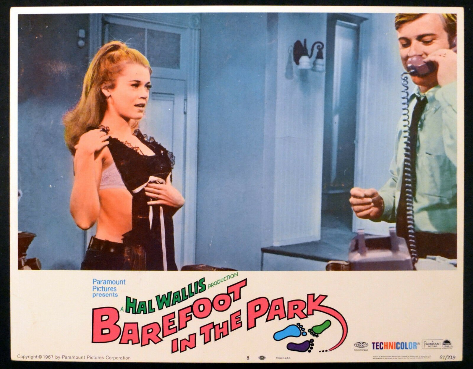 3 Original 11 inch x 14 inch U.S. Lobby Cards for the 1967 Gene Saks Romantic Comedy BAREFOOT IN THE PARK, based on the play by Neil Simon and starring Robert Redford, Jane Fonda, Charles Boyer and Mildred Natwick.