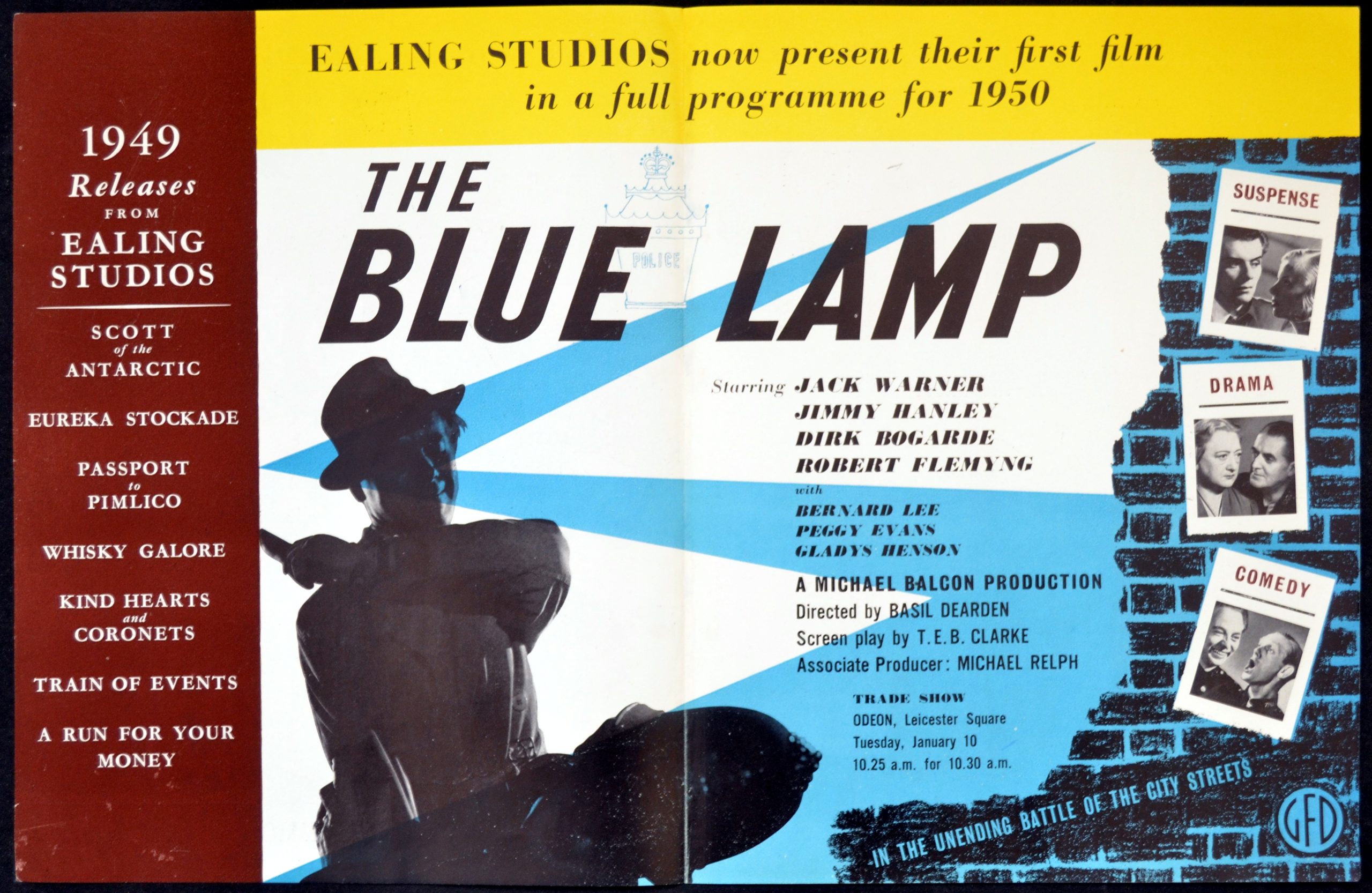 Original British 11 inch x 17 inch Trade Advert from Kinematograph Weekly for the 1949 Basil Dearden Ealing Studios Crime Drama THE BLUE LAMP, written by T.E.B. Clarke and starring Jack Warner, Dirk Bogarde, Jimmy Hanley, Patric Doonan, Peggy Evans, Robert Flemyng, Bernard Lee and Gladys Henson.