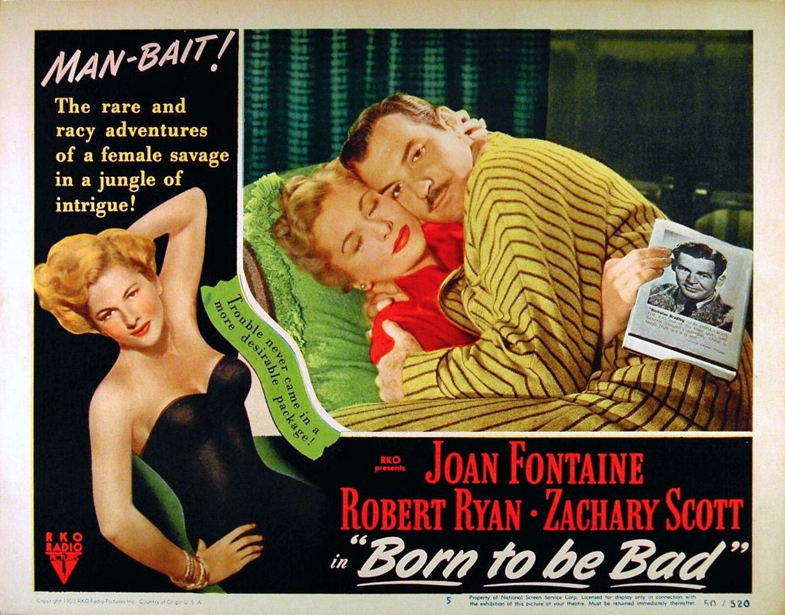 Original 11 inch x 14 inch U.S. Lobby Card #5 for the 1950 Nicholas Ray Film Noir BORN TO BE BAD, based on the novel “All Kneeling” by Anne Parrish and starring Joan Fontaine and Zachary Scott.