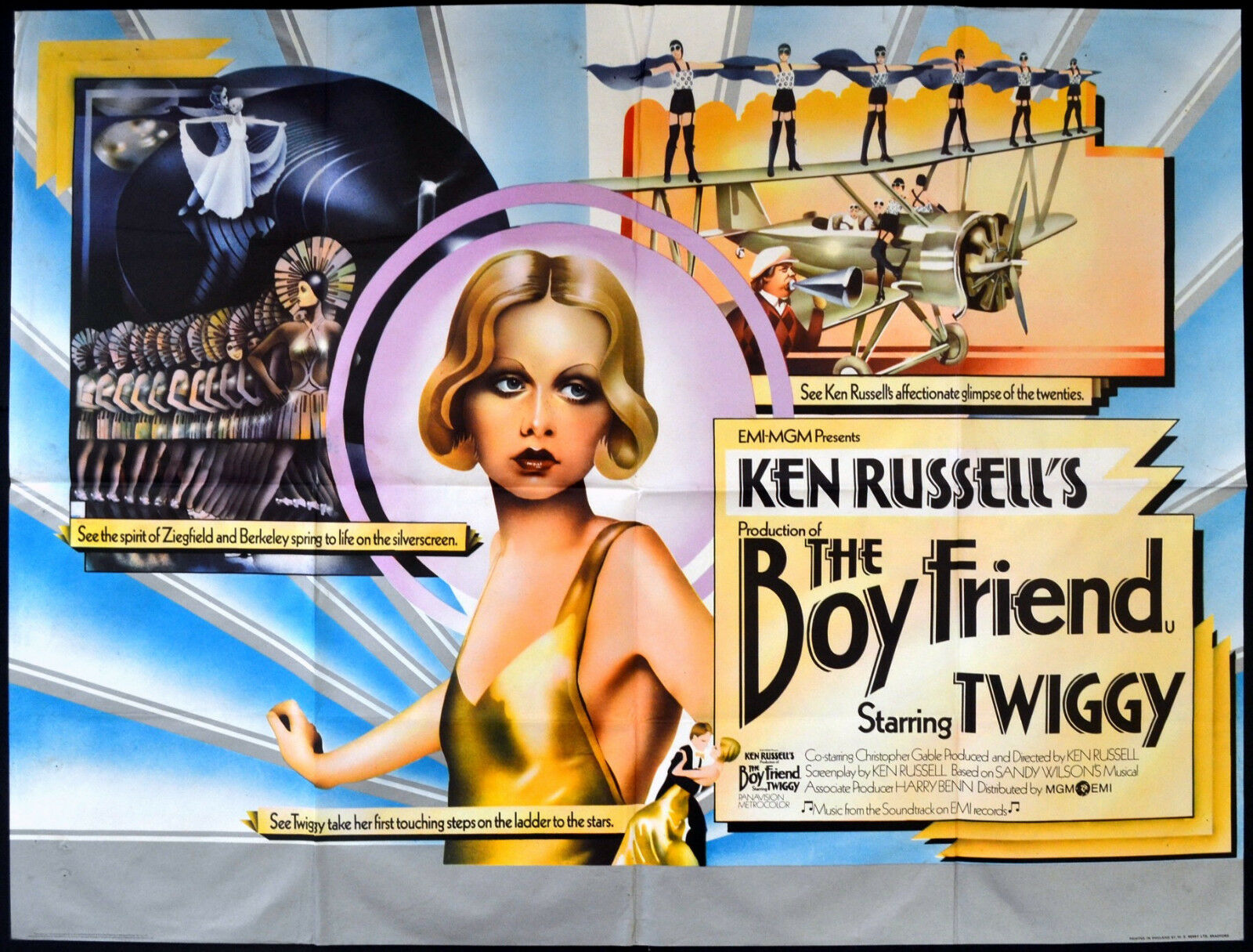 Original British 30 inch x 40 inch Quad Poster for the 1971 Ken Russell Musical THE BOY FRIEND starring Twiggy, Christopher Gable, Max Adrian, Bryan Pringle, Murray Melvin, Moyra Fraser, Georgina Hale, Vladek Sheybal, Tommy Tune and Brian Murphy.