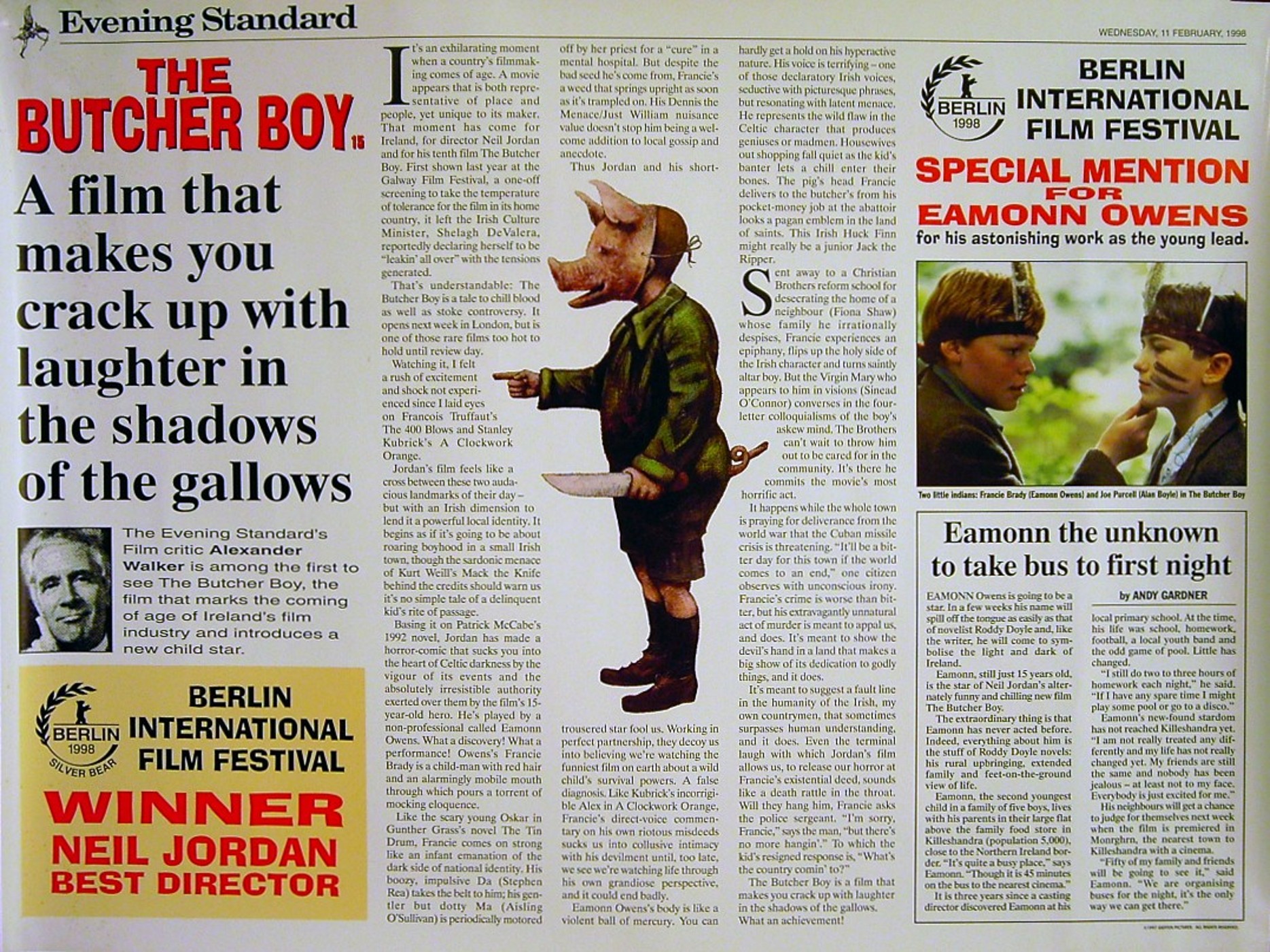 Original British 30 inch x 40 inch Quad Poster for the 1997 Neil Jordan Comedy Drama THE BUTCHER BOY, based on the novel by Pat McCabe and starring Eamonn Owens, Sean McGinley, Stephen Rea and Ian Hart.