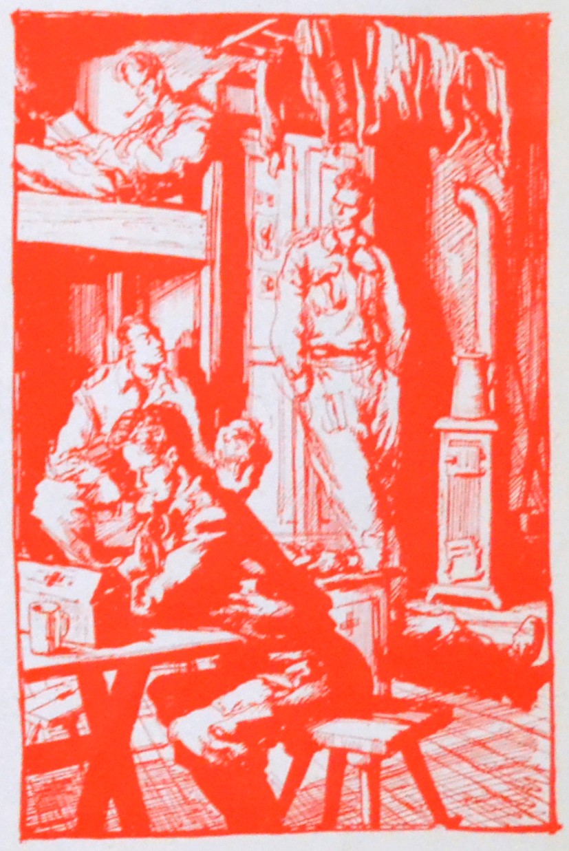 Internal drawings by Lieutenant John Godfrey Bernard Worsley, R.N.V.R. (16 February 1919 – 3 October 2000). Worsley was a prolific British artist and illustrator, best known for his naval battle scenes, and portraits of high-ranking officers and political figures. One of the very few active service artists of the Second World War, Worsley was the only person to render contemporary sea-warfare in situ, and the only official war artist captured by the Germans. Detained in the infamous prisoner-of-war camp Marlag O, Worsley documented prison life with supplies provided by the Red Cross, his expertise employed in the forging of identity papers, and an ingenious escape attempt requiring the construction of a mannequin named Albert R.N.