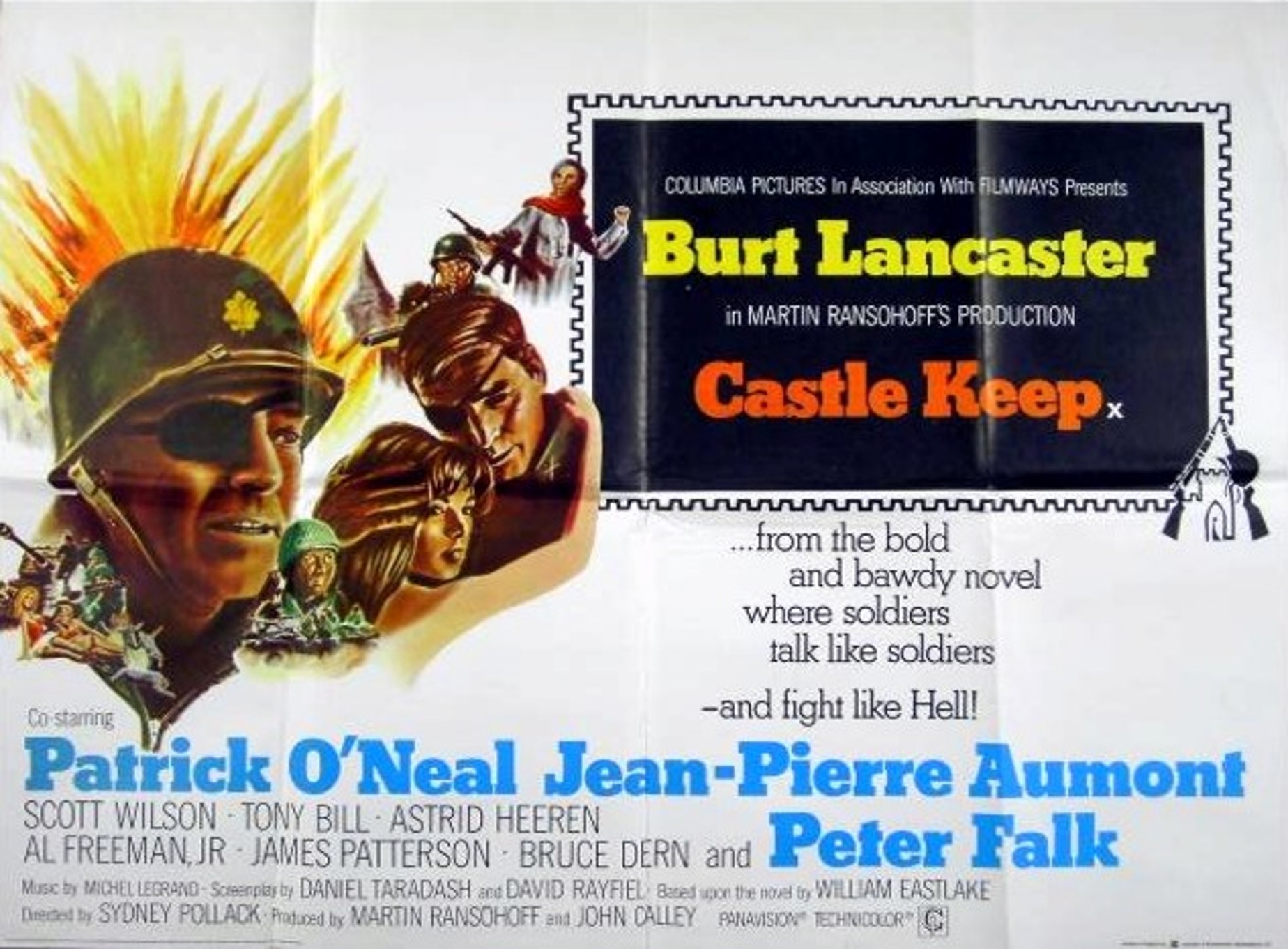 Original British 30 inch x 40 inch Quad Poster for the 1969 Sydney Pollack War Movie CASTLE KEEP, based on the novel by William Eastlake and starring Burt Lancaster, Peter Falk, Patrick O’Neal, Jean-Pierre Aumont, Al Freeman, Scott Wilson, Astrid Heeren, Tony Bill, James Patterson, Bruce Dern and Michael Conrad.
