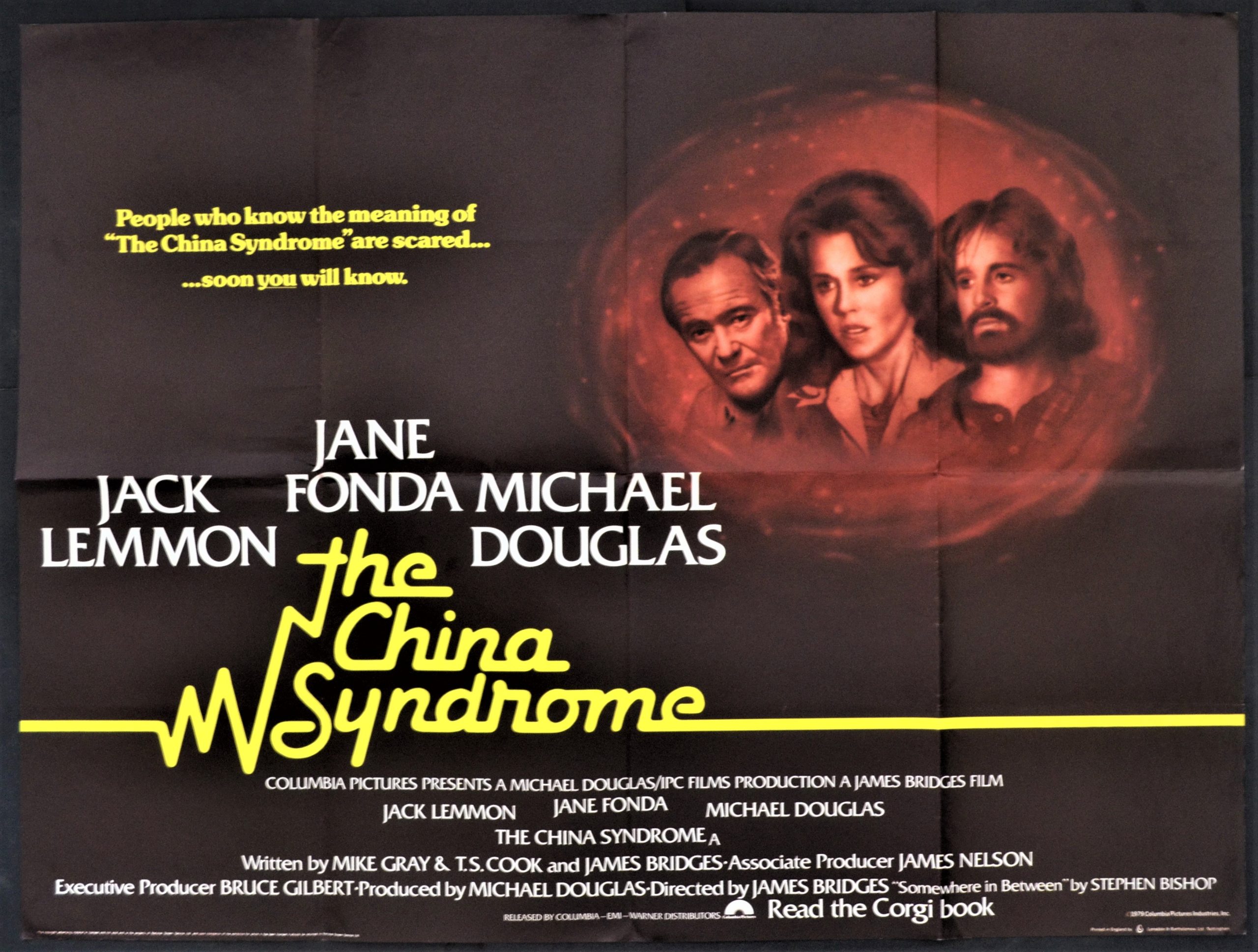 Original British 30 inch x 40 inch Quad Poster for the 1979 James Bridges Thriller THE CHINA SYNDROME starring Jane Fonda, Jack Lemmon, Michael Douglas, Scott Brady, James Hampton, Peter Donat, Wilford Brimley, Richard Herd, Daniel Valdez, Stan Bohrman, James Karen, Michael Alaimo, Donald Hotton, Khalilah Ali, Paul Larso,n Alan Beckwith, Ron Lombard, Tom Eure, Nick Pellegrino, Daniel Lewk, Allan Chinn, Martin Fiscoe, Alan Kaul and Michael Mann.