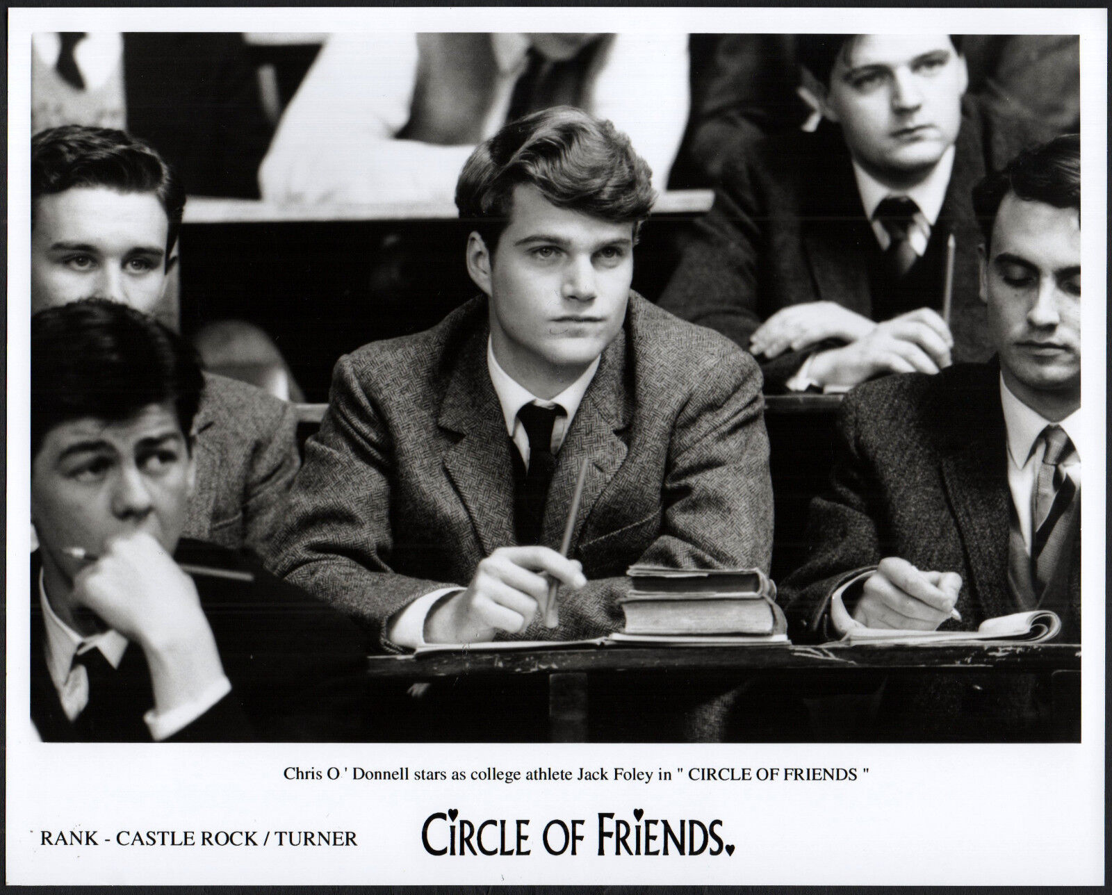 2 Original 10 inch x 8 inch Black and White Stills of Chris O’Donnell, Minnie Driver & Alan Cumming in the 1995 Pat O’Connor Romantic Drama CIRCLE OF FRIENDS, based on the novel by Maeve Binchy.