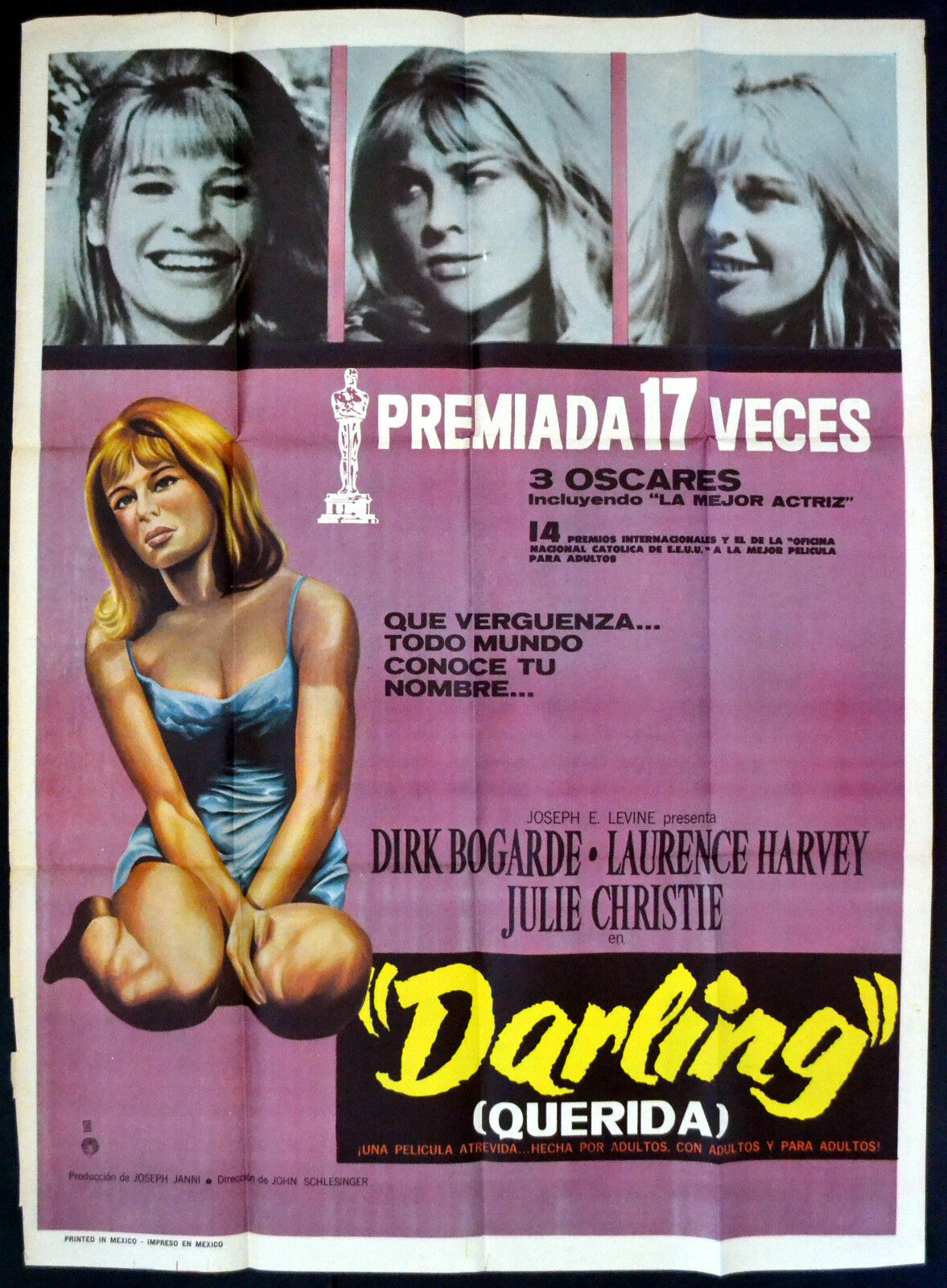 Original Mexican 27 inch x 37 inch Poster for the 1965 John Schlesinger Romantic Drama DARLING starring Dirk Bogarde, Laurence Harvey, Julie Christie, Roland Curram and Basil Henson.