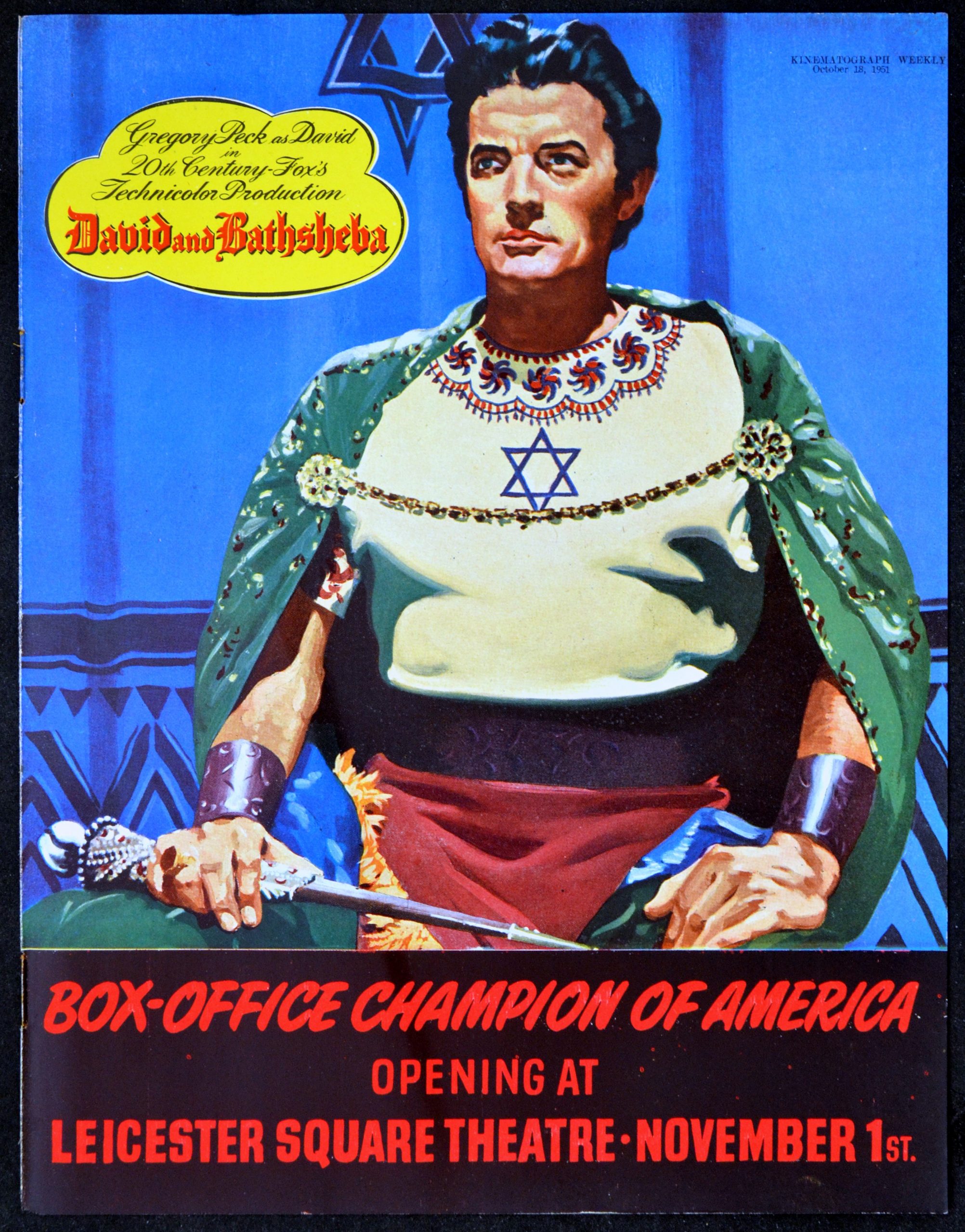 Original British 11 inch x 8 3/8 inch Trade Advertisement from Kinematograph Weekly for the 1951 Henry King Historical Drama DAVID AND BATHSHEBA, written for the screen by Philip Dunne and starring Gregory Peck, Susan Hayward, Raymond Massey and Kieron Moore.