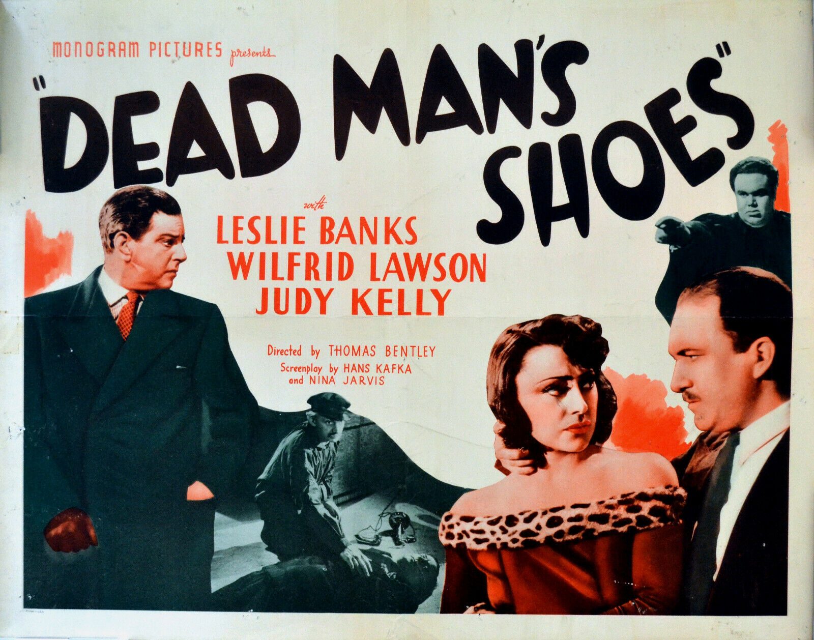 Original U.S. 22 inch x 28 inch Half Sheet Poster for the 1940 Thomas Bentley Crime Drama DEAD MAN’S SHOES starring Leslie Banks, Joan Marion, Geoffrey Atkins, Wilfrid Lawson, Judy Kelly, Nancy Price, Walter Hudd, Peter Bull, Henry Oscar, Ludwig Stössel and Roddy McDowall.