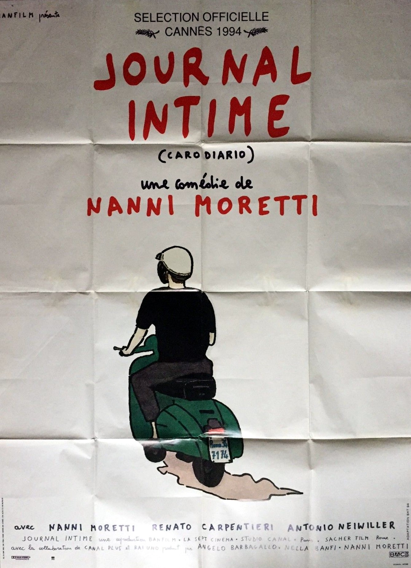 Original French 47 inch x 63 inch Poster for the 1994 Nanni Moretti Comedy DEAR DIARY (CARO DIARIO) starring Nanni Moretti, Renato Carpentieri, Antonio Neiwiller, Jennifer Beals, Giovanna Bozzolo, Sebastiano Nardone, Antonio Petrocelli, Giulio Base, Italo Spinelli and Alexandre Rockwell.