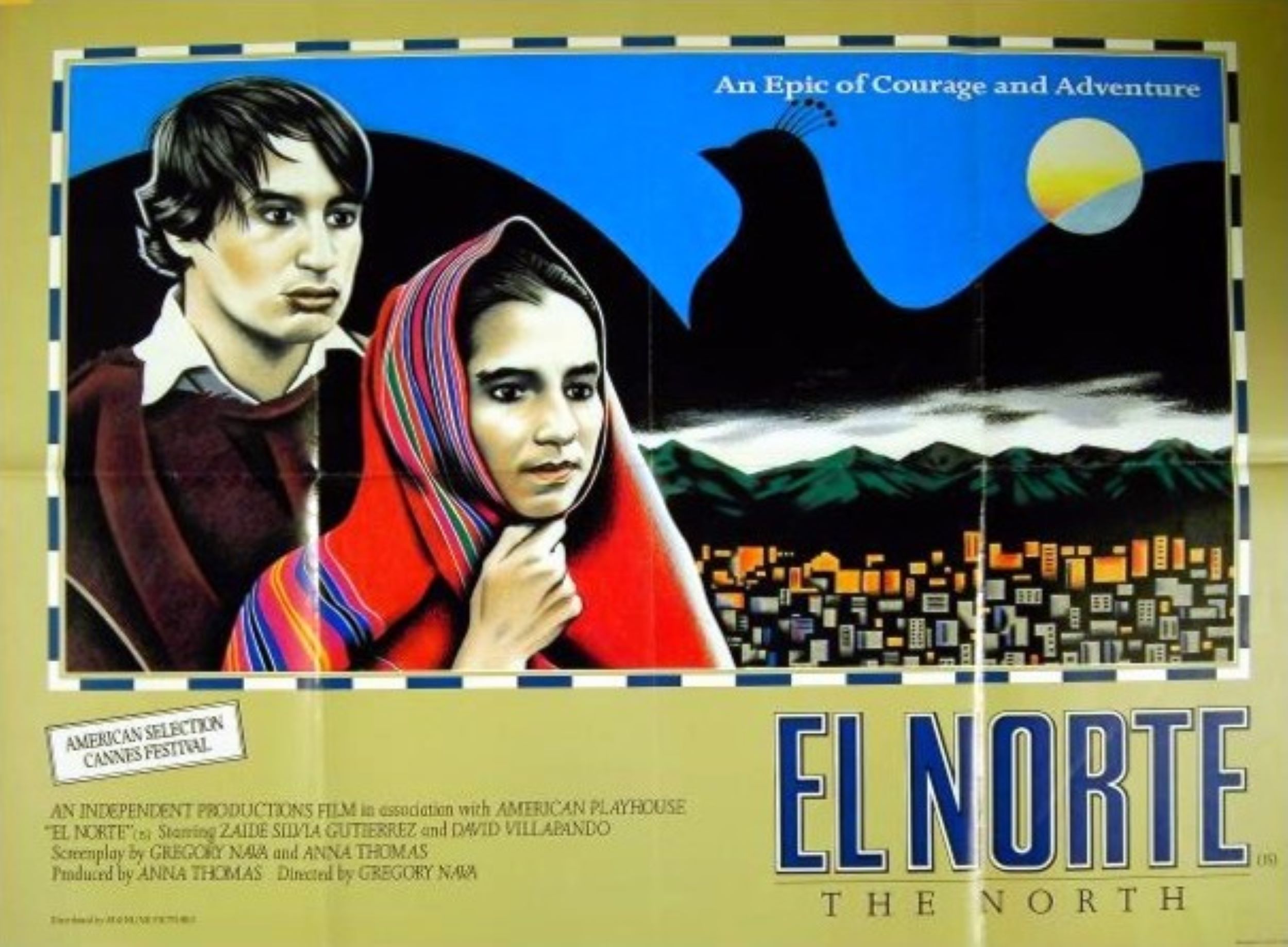 Original British 30 inch x 40 inch Quad Poster for the 1984 Gregory Nava Mayan Drama EL NORTE starring Zaide Silvia Gutierrez, David Villalpando, Ernesto Gomez Cruz, Alicia Del Lago, Lupe Ontiveros and Trinidad Silva.