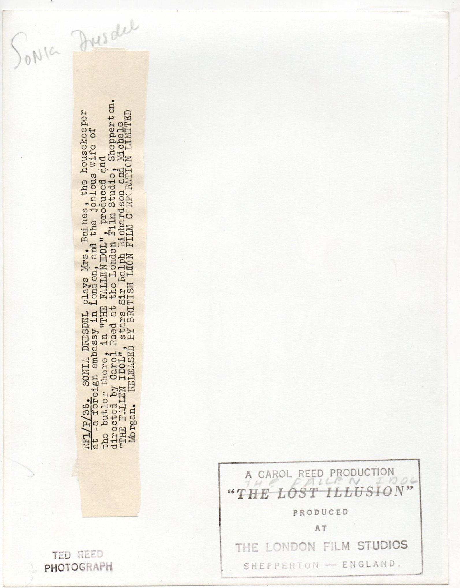 Original 10 inch x 7 3/4 inch Portrait of SONIA DRESDEL in the 1948 Carol Reed Thriller THE FALLEN IDOL, based on a story by Graham Greene.