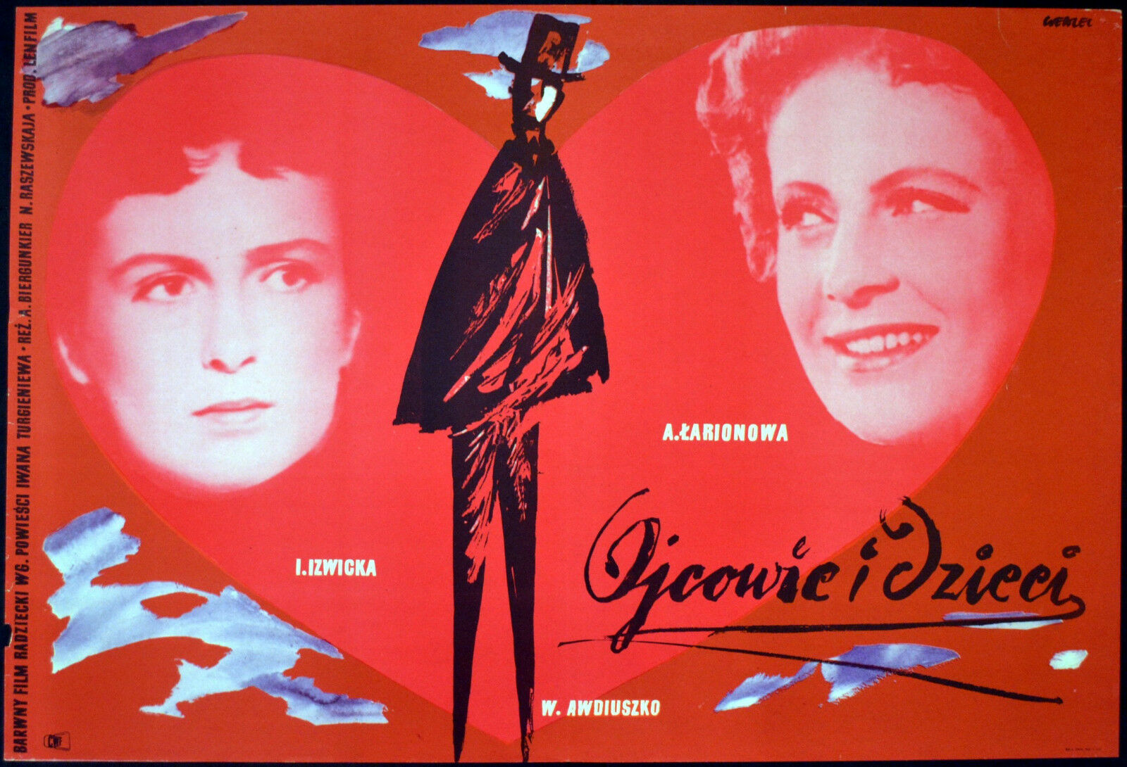 Original 1960 Polish 22 3/4 inch x 33 1/2 inch Poster for the 1959 Adolf Bergunker & Natalya Rashevskaya Russian Historical Drama FATHERS AND SONS (OTTSY I DETI), based on the novel by Ivan Turgenev and starring Viktor Avdyushko, Nikolai Sergeyev, Alla Larionova, Izolda Izvitskaya and Eduard Martsevich.
