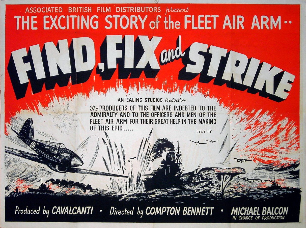 Original British 30 inch x 40 inch Quad Poster for the 1942 Compton Bennett Ealing Studios Fleet Air Arm Documentary FIND, FIX AND STRIKE.