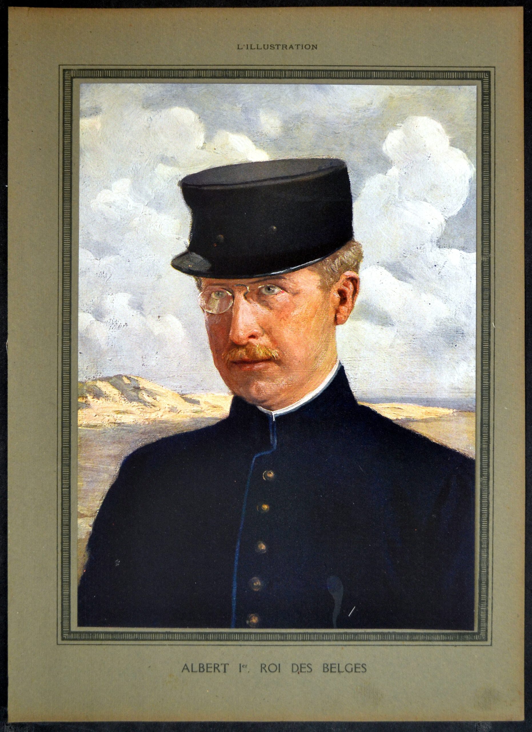 Original French 11 inch x 15 1/4 inch portrait titled ALBERT IER, ROI DES BELGES