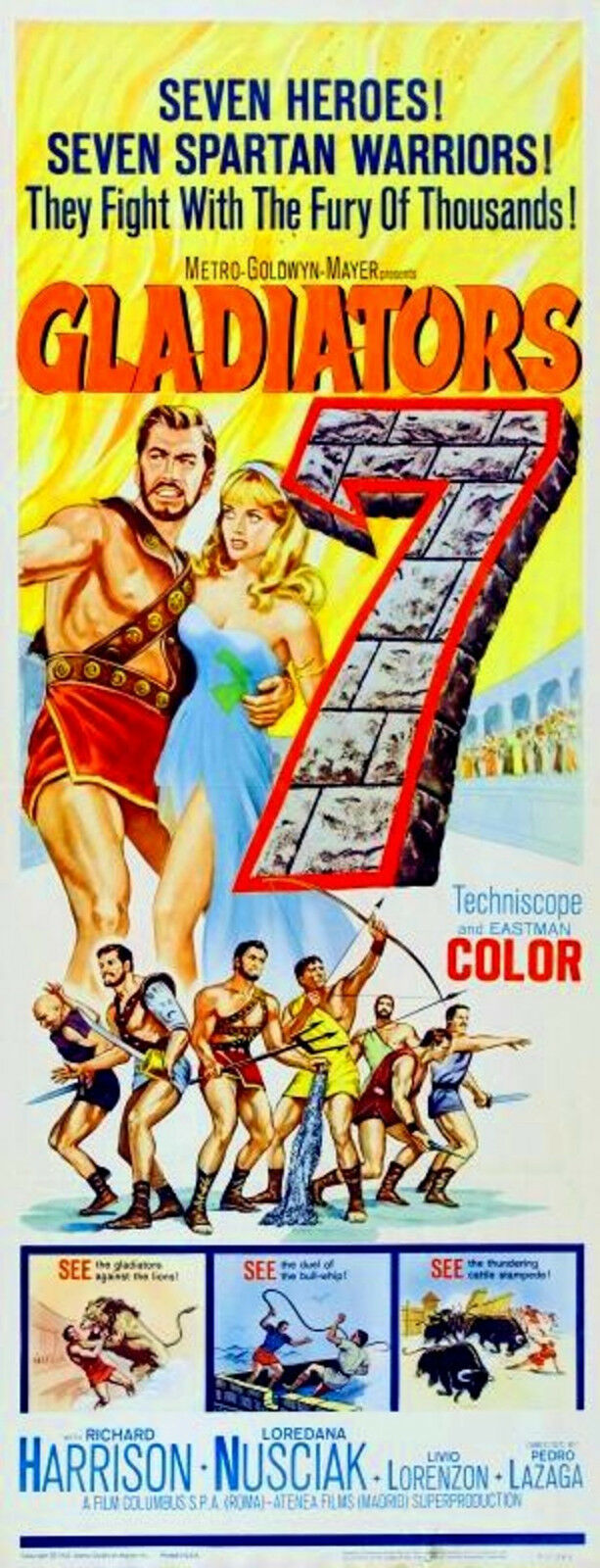 Original U.S. 14 inch x 36 inch Insert Poster for the 1962 Pedro Lazaga Adventure GLADIATORS 7 (I SETTE GLADIATORI) starring Richard Harrison and Loredana Nusciak.