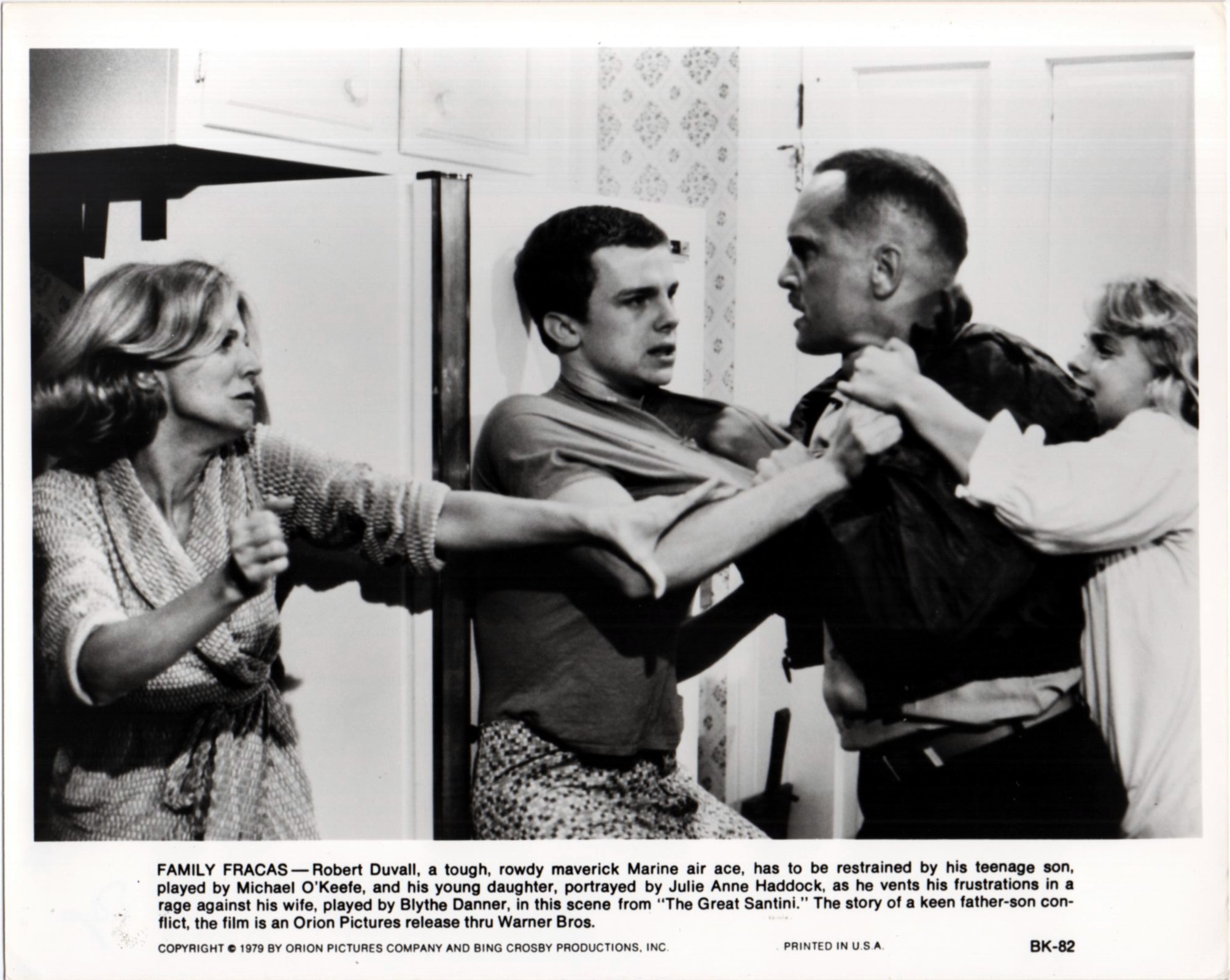 9 Original 10 inch x 8 inch Black and White Stills of ROBERT DUVALL, BLYTHE DANNER, MICHAEL O’KEEFE & JULIE ANNE HADDOCK in the 1979 Lewis John Carlino Drama THE GREAT SANTINI, based on the novel by Pat Conroy and written for the screen by Lewis John Carlino.