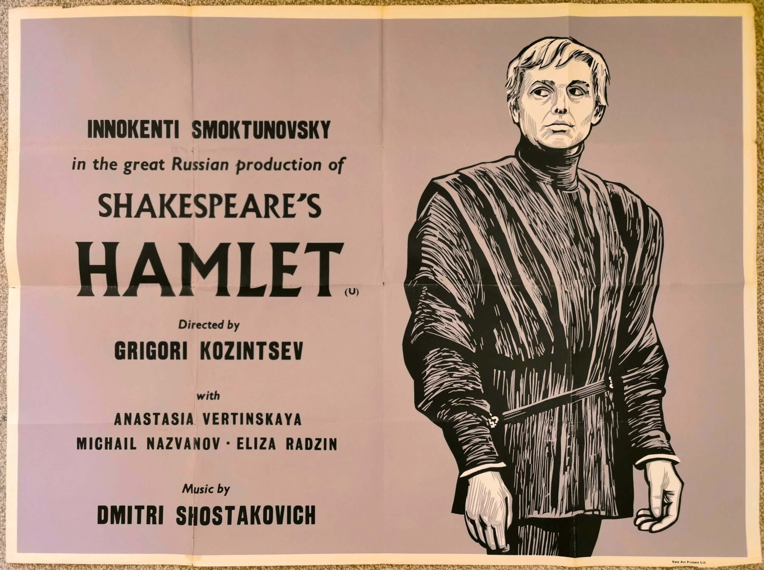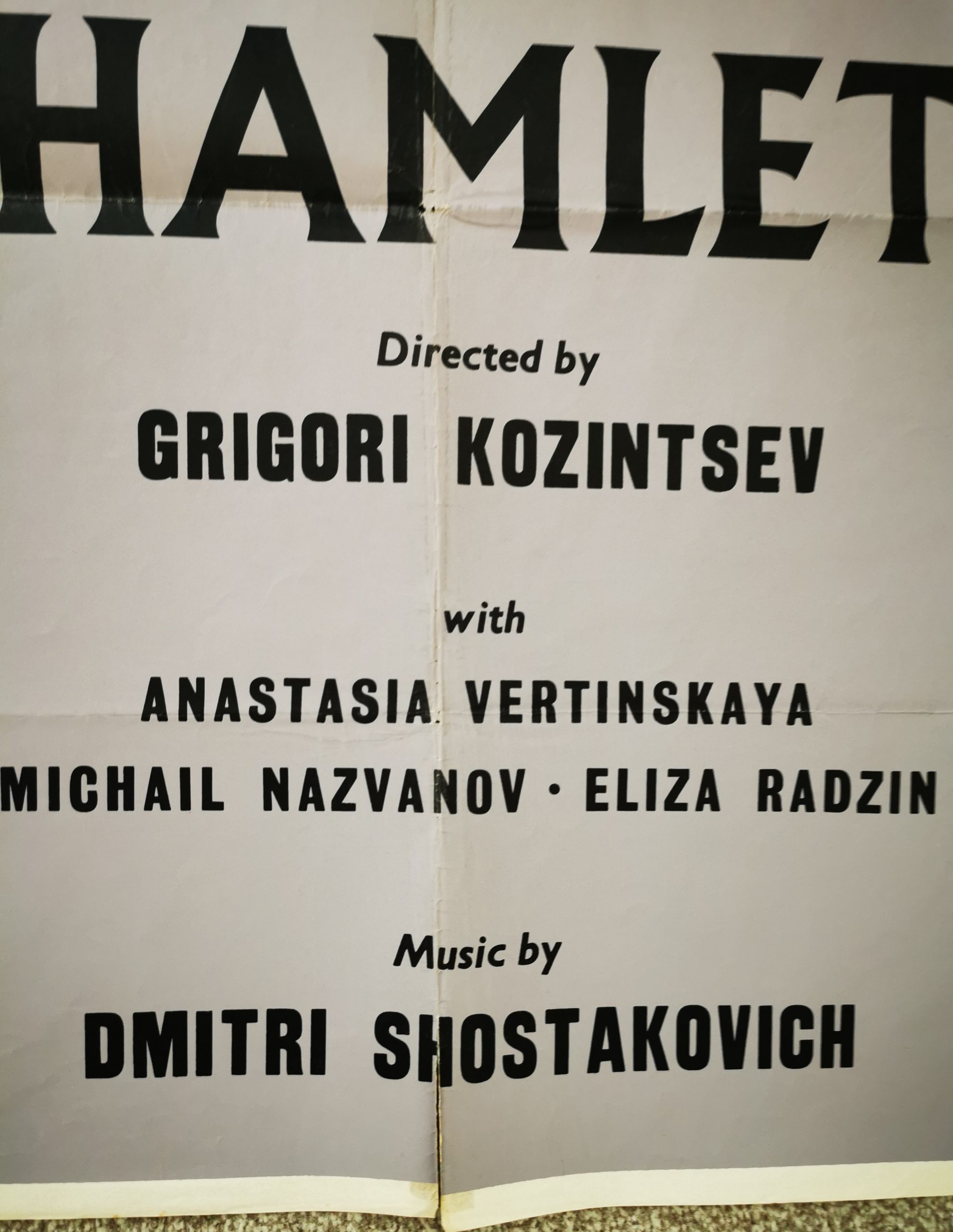 Original British 30 inch x 40 inch Quad Poster for 1964 Grigori Kozintsev Russian version of the William Shakespeare play HAMLET starring Innokenti Smoktunovsky, Mikhail Nazvanov, Elsa Radzin and Anastasia Vertinskaya.