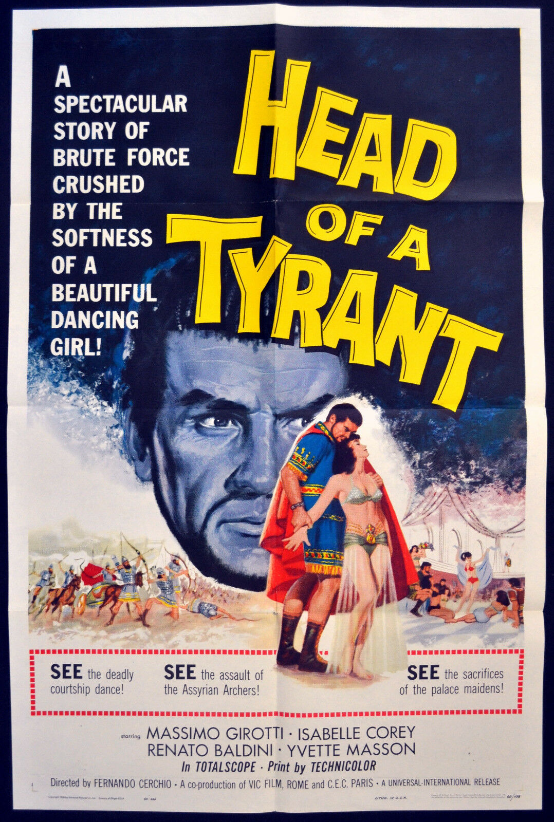 Original U.S. 27 inch x 41 inch 1-Sheet Poster for the 1959 Fernando Cerchio Adventure HEAD OF A TYRANT (GIUDITTA E OLOFERNE) starring Massimo Girotti, Isabelle Corey, Renato Baldini and Yvette Masson .