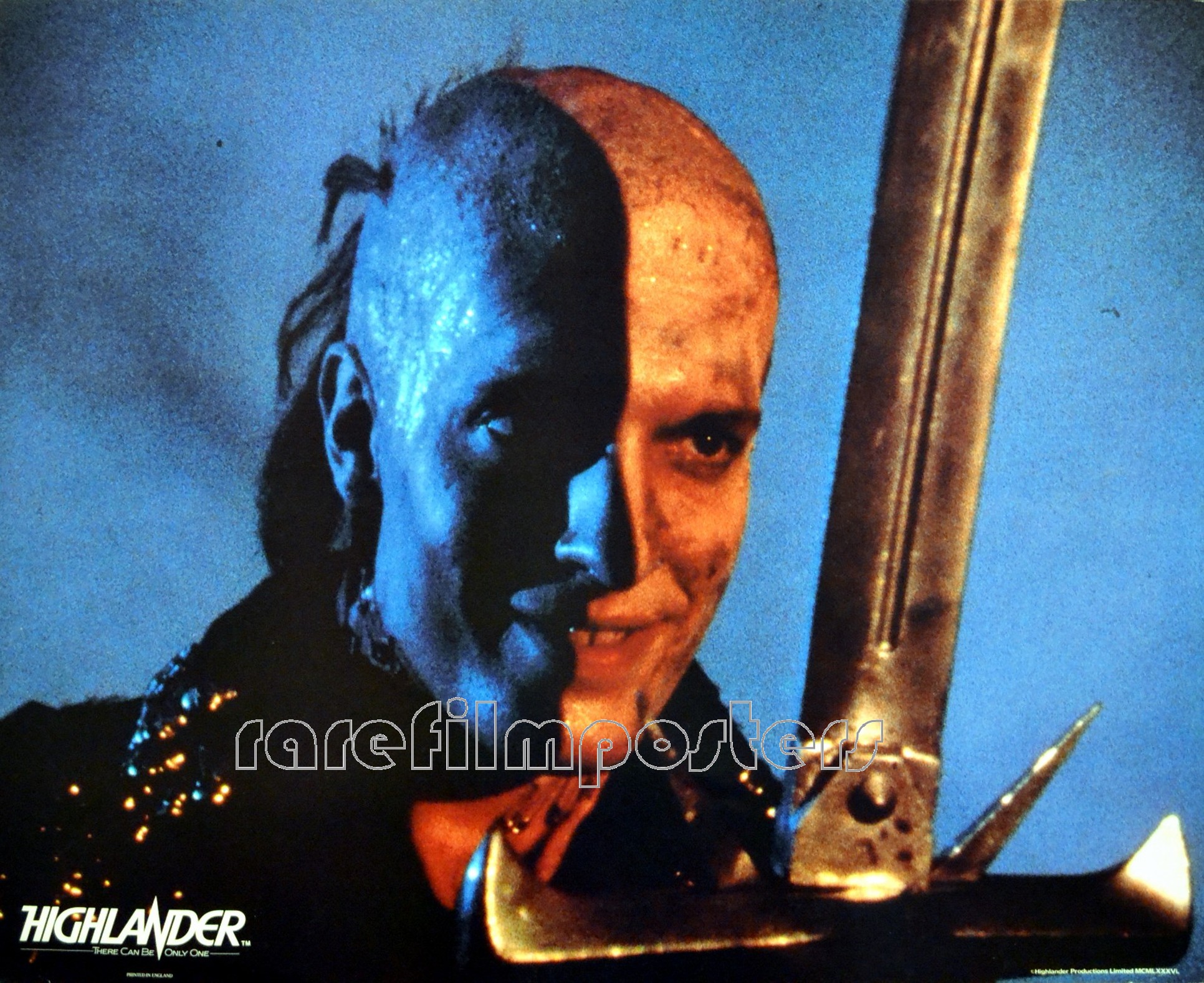 Original British 14 inch x 22 inch Jumbo Lobby Card of CLANCY BROWN in the Russell Mulcahy Adventure HIGHLANDER.