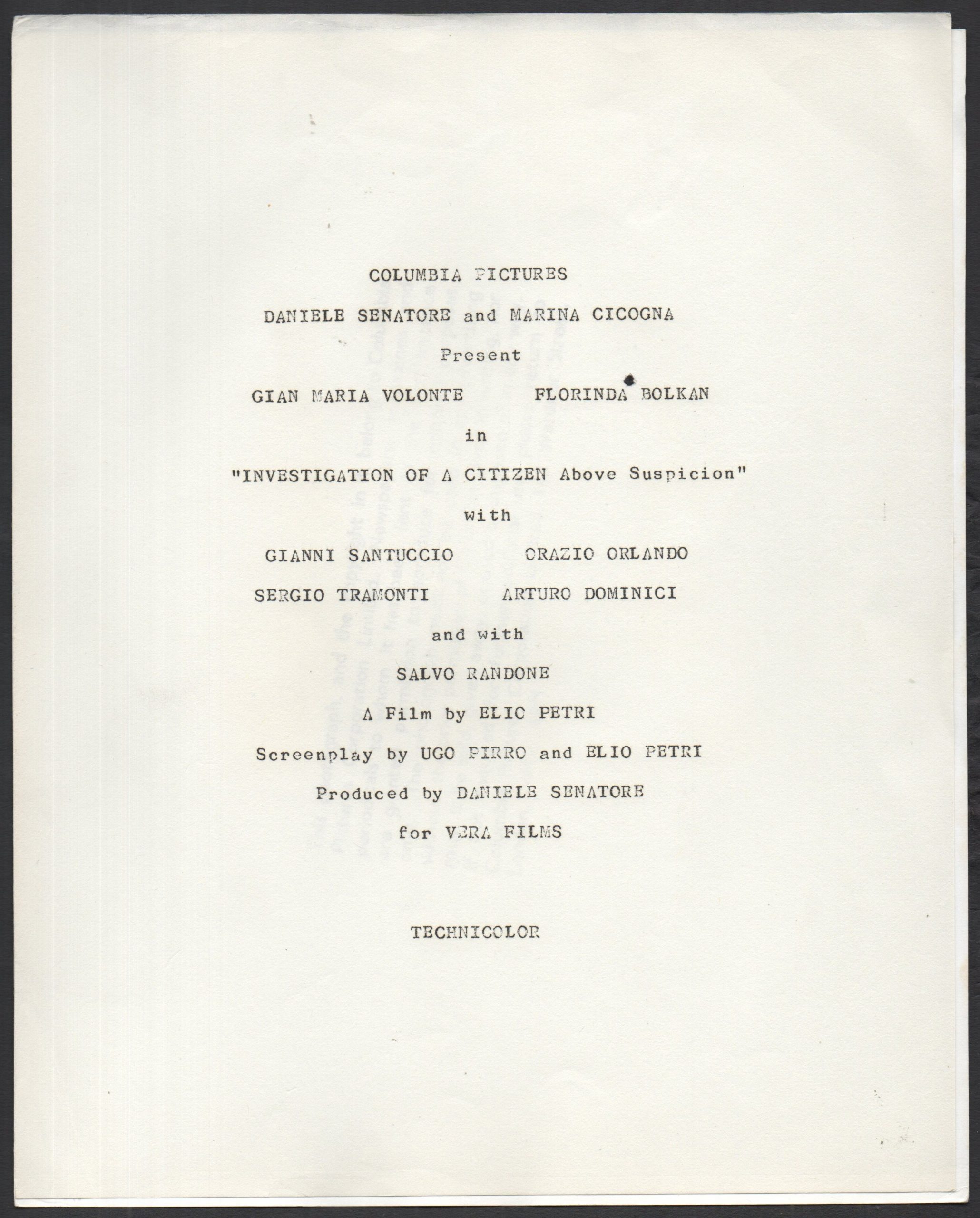 INVESTIGATION OF A CITIZEN ABOVE SUSPICION
