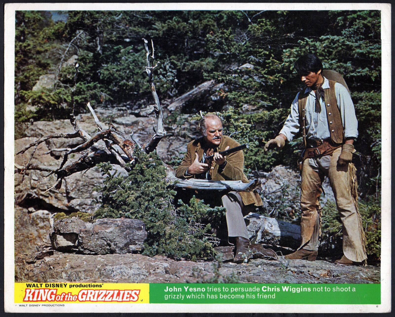 3 Original British 10 inch by 8 inch Front-of-House Stills (Lobby Cards) for the 1970 Ron Kelly Walt Disney Western KING OF THE GRIZZLIES starring John Yesno and Chris Wiggins.