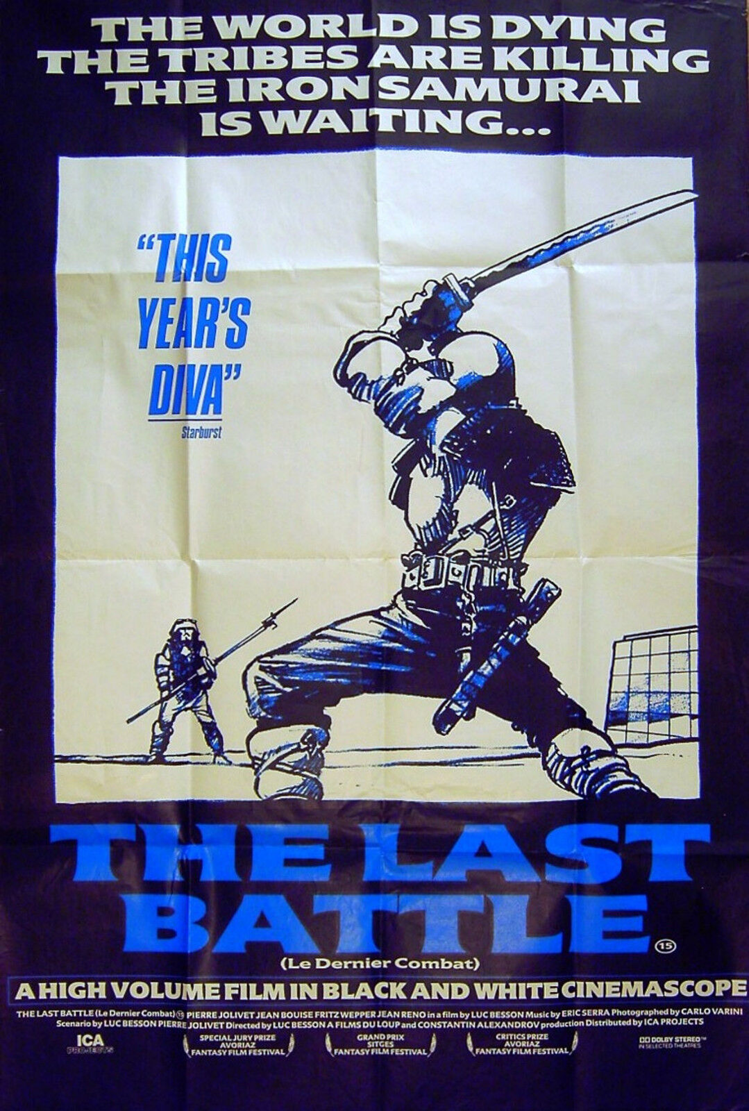 Original British 40 inch x 60 inch Poster for the 1983 Luc Besson Sci-Fi Movie THE LAST BATTLE (LE DERNIER COMBAT) starring Pierre Jolivet, Jean Bouise, Fritz Wepper, Jean Reno and Christiane Kruger.