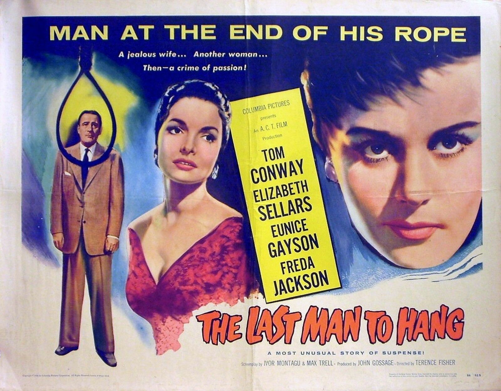 Original U.S. 22 inch x 28 inch Half Sheet Poster for the 1956 Terence Fisher Crime Drama THE LAST MAN TO HANG?, based on the novel “The Jury” by Gerald Bullett and starring Tom Conway, Elizabeth Sellars, Eunice Gayson, Freda Jackson, Hugh Latimer, Victor Maddern and Anthony Newley.