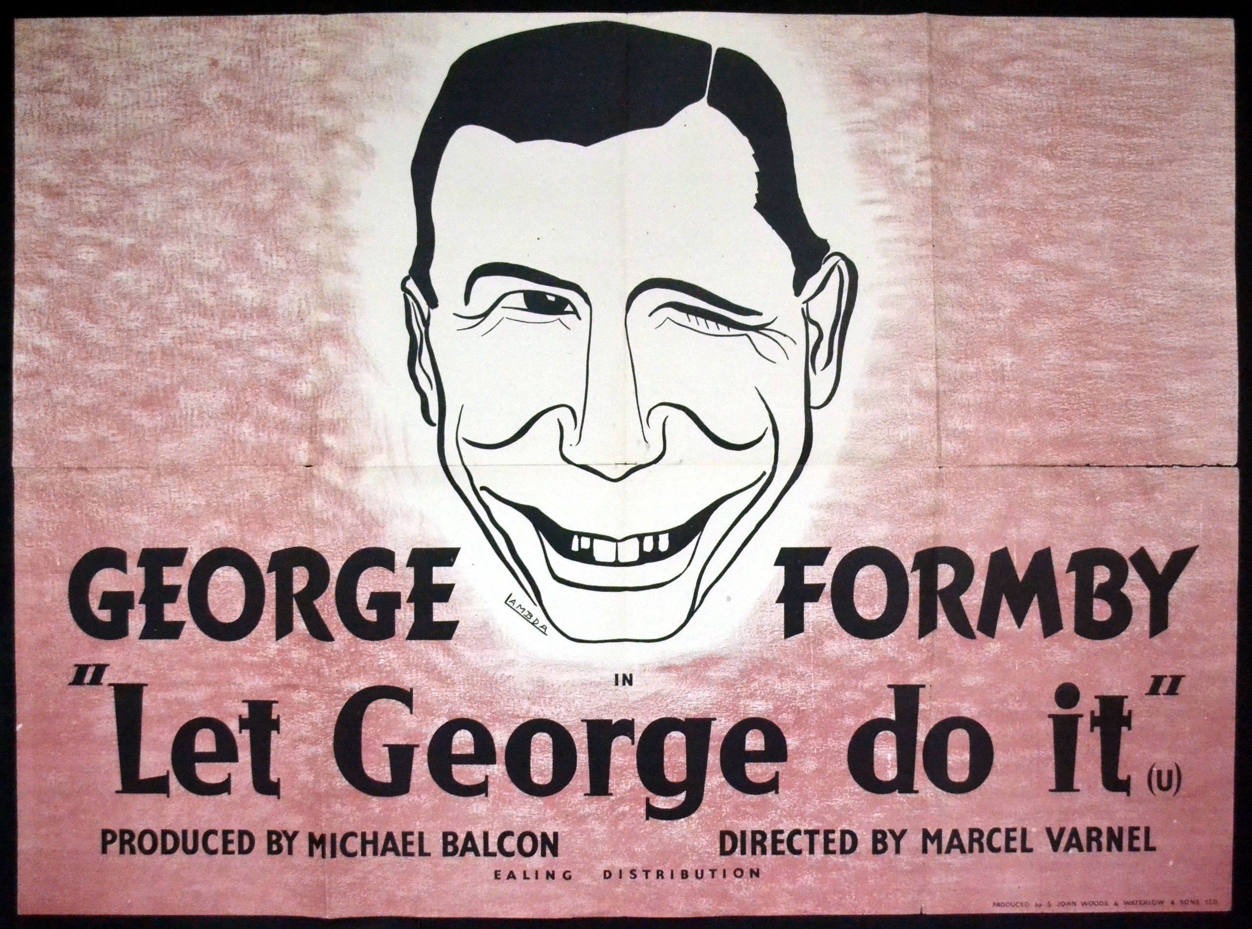 Original British 10 inch x 8 inch Still of GEORGE FORMBY in the 1940 Marcel Varnel Ealing Studios Comedy LET GEORGE DO IT starring George Formby, Phyllis Calvert, Garry Marsh, Romney Brent, Bernard Lee and Coral Browne.