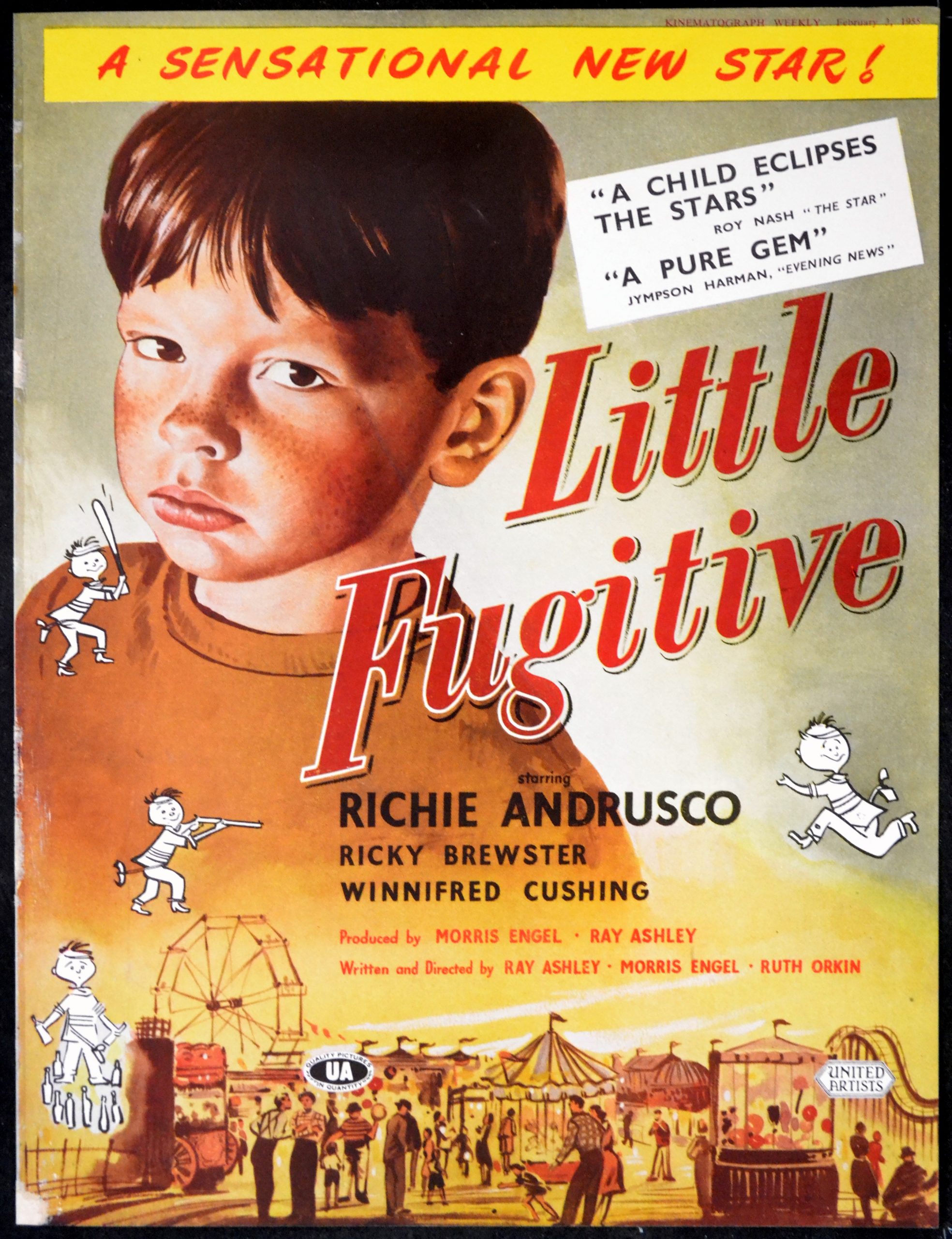 Original 1955 British 11 inch x 8 1/2 inch Trade Advertisement from Kinematograph Weekly for the 1953 Ray Ashley,Morris Engel & Ruth Orkin Drama LITTLE FUGITIVE starring Richard Brewster, Winifred Cushing, Jay Williams and Richie Andrusco.