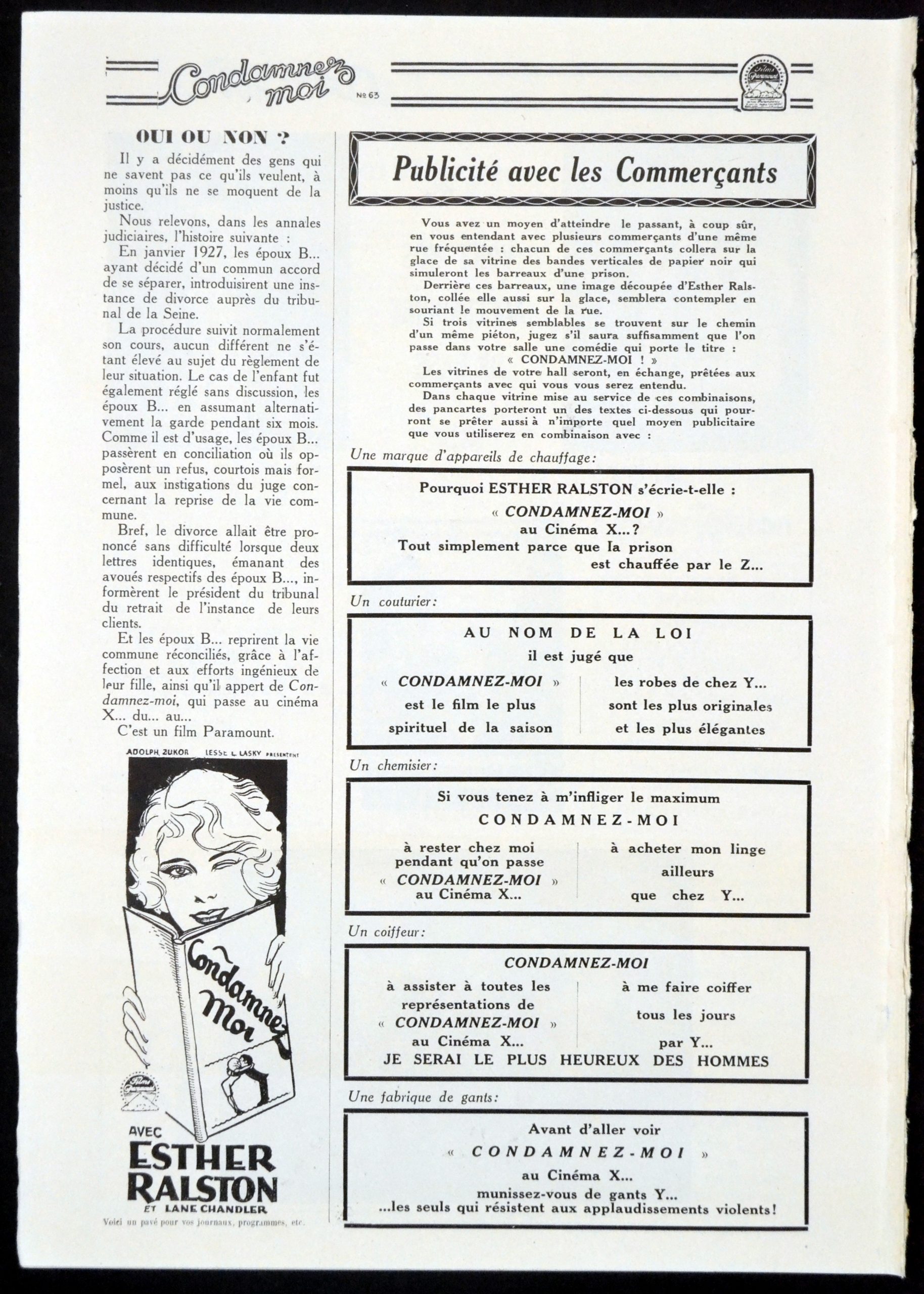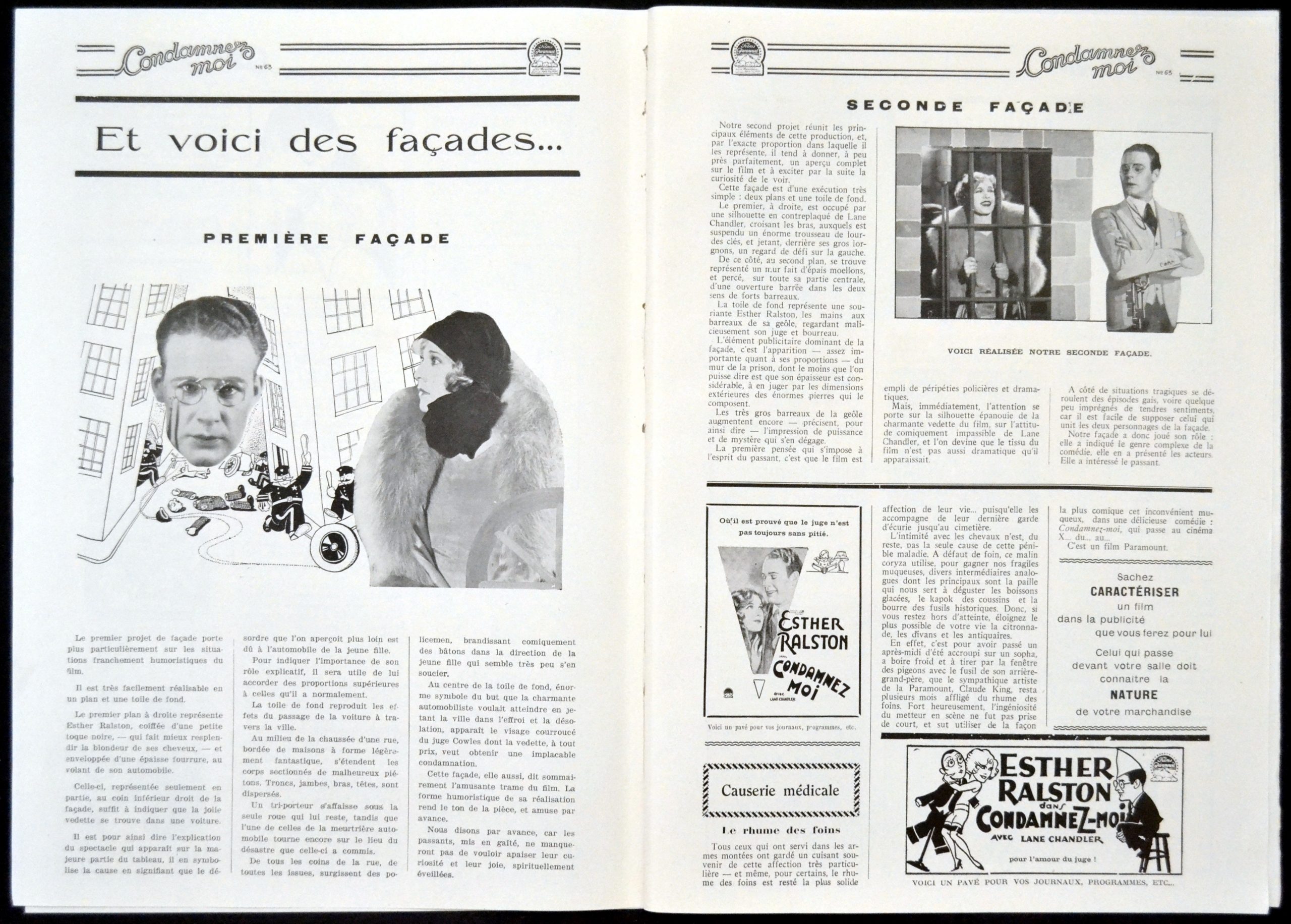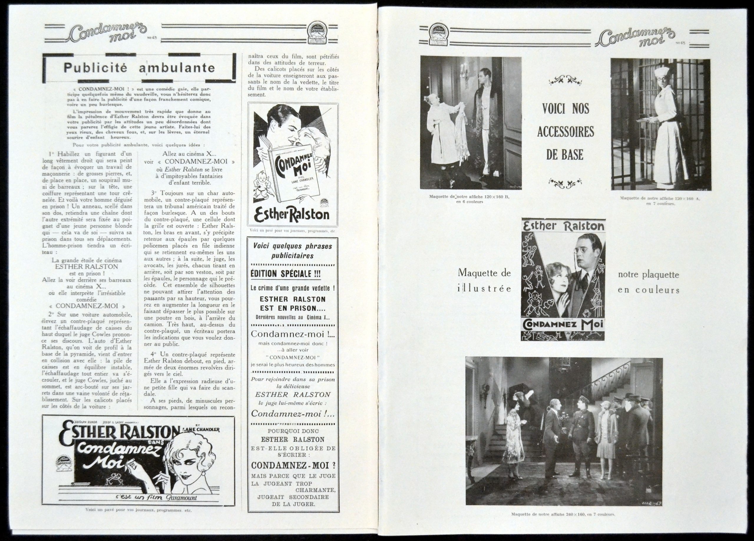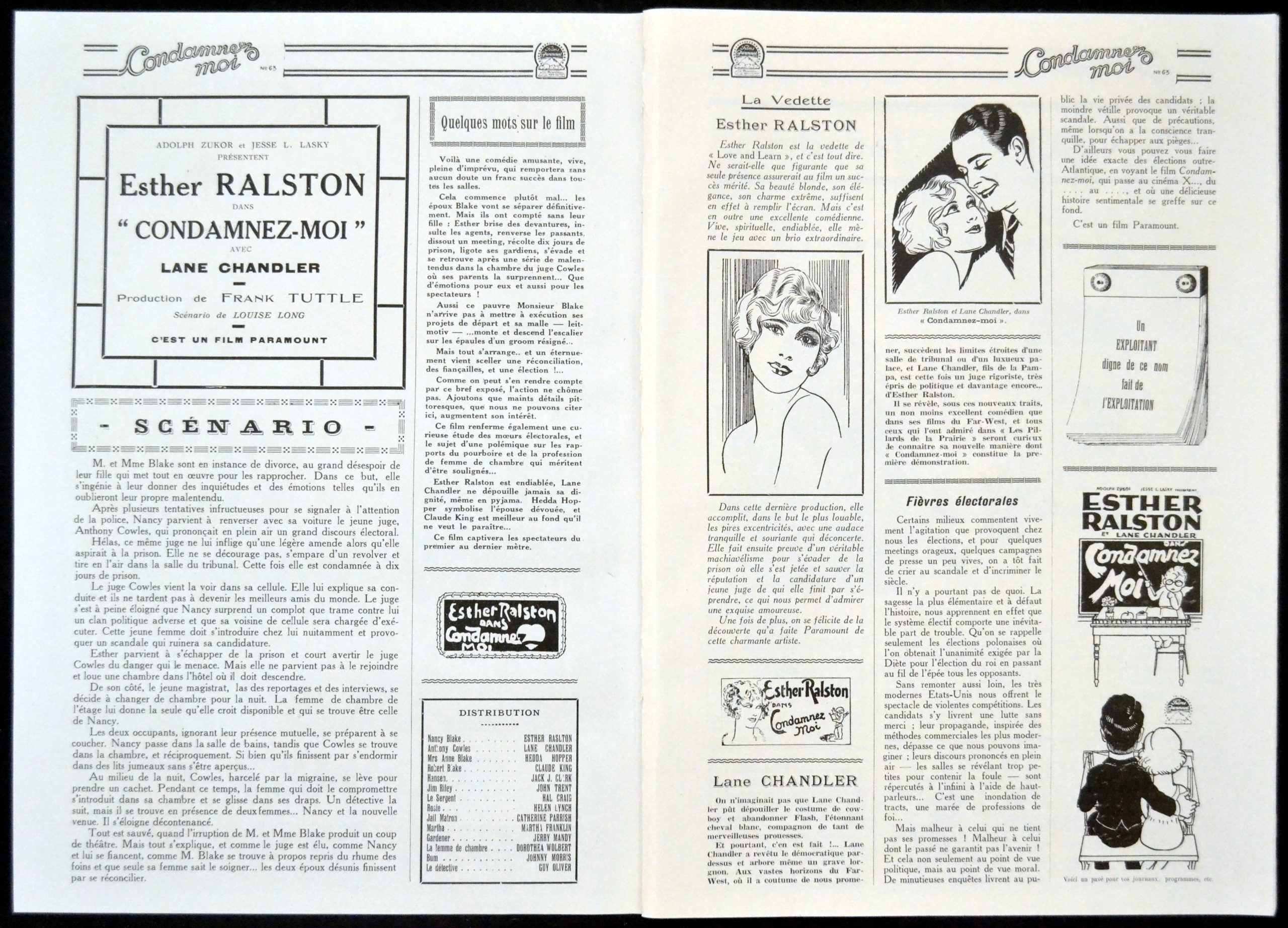 Original French 12 1/4 inch x 8 3/4 inch 8 Page Illustrated Pressbook for the 1928 Frank Tuttle Comedy LOVE AND LEARN (CONDAMNEZ MOI), based on a story by Doris Anderson and starring Esther Ralston, Lane Chandler, Hedda Hopper, Claude King, John J. Clark, Jack Trent and Helen Lynch.