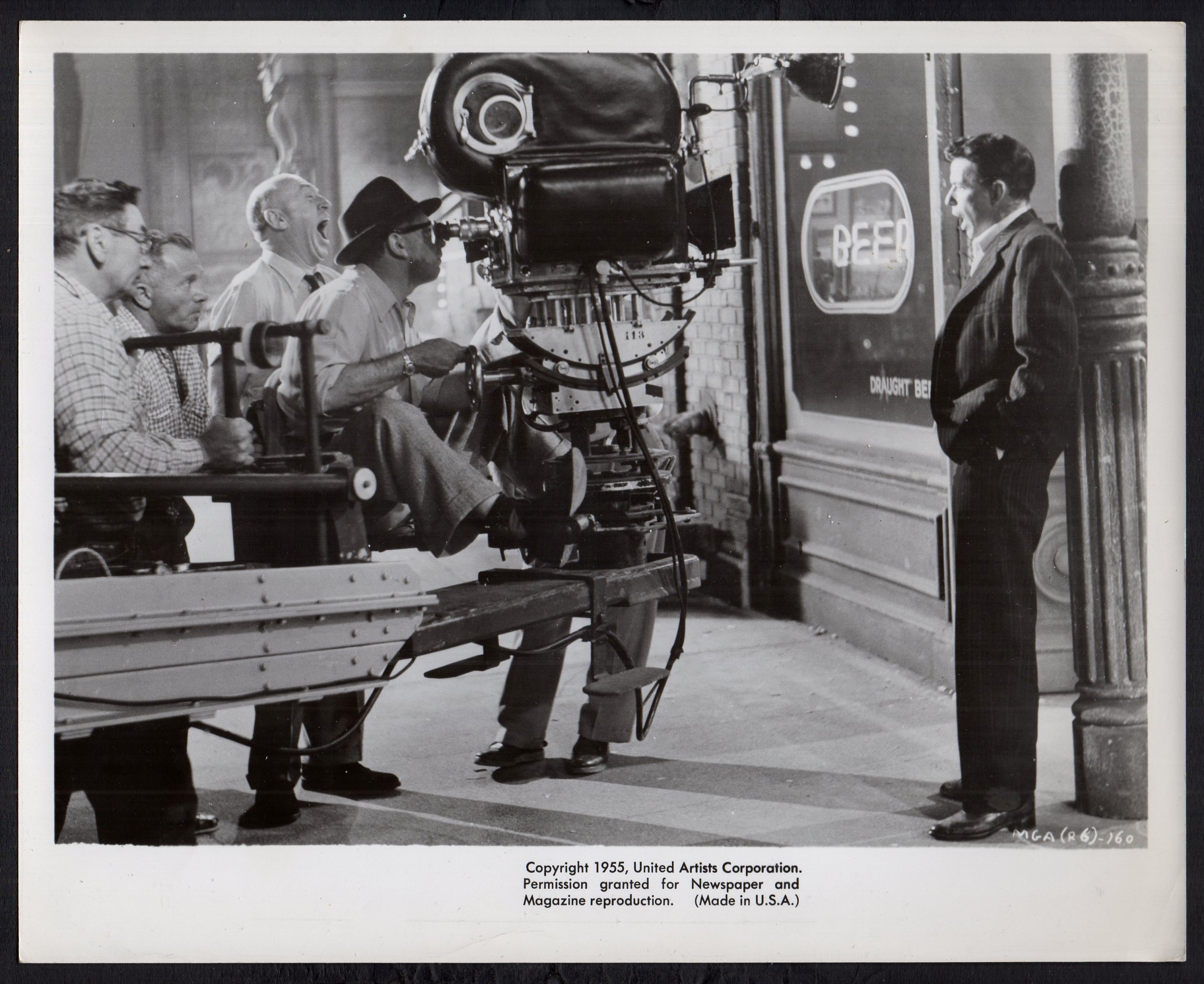 Original 10 inch x 8 inch Still of OTTO PREMINGER relearsing a scene with FRANK SINATRA for the 1955 Otto Preminger Drama THE MAN WITH THE GOLDEN ARM, based on the novel by Nelson Algren.