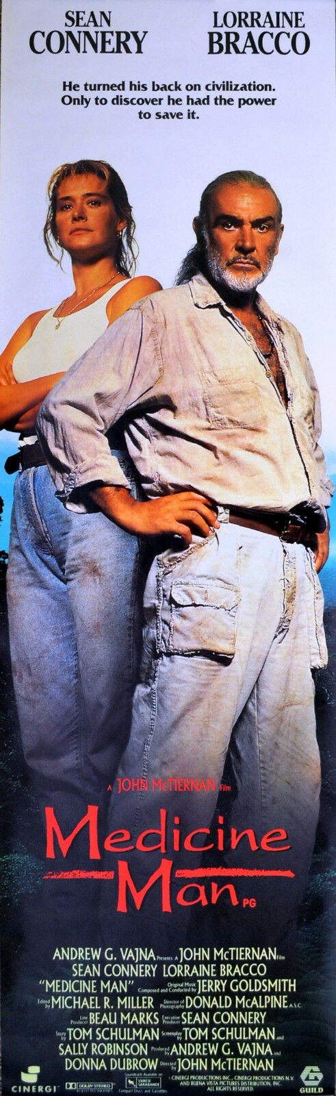 Original British 20 inch x 60 inch Quad Poster for the 1992 John McTiernan Adventure MEDICINE MAN starring Sean Connery, Lorraine Bracco, Jose Wilker, Rodolfo De Alexandre and Francisco Tsiren Tsere Rereme.