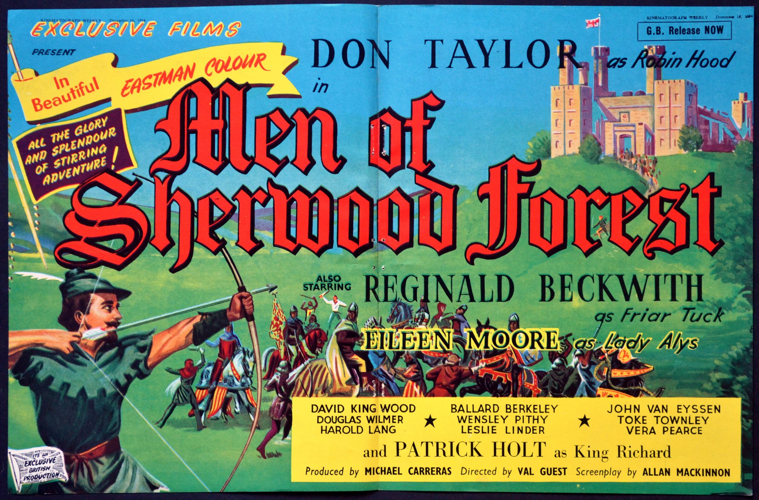 Original British 17 inch x 11 inch Trade Advertisement from Kinematograph Weekly for the 1954 Val Guest Robin Hood Adventure from Hammer Film Productions MEN OF SHERWOOD FOREST starring Don Taylor, Reginald Beckwith, Eileen Moore, Douglas Wilmer and Patrick Holt.