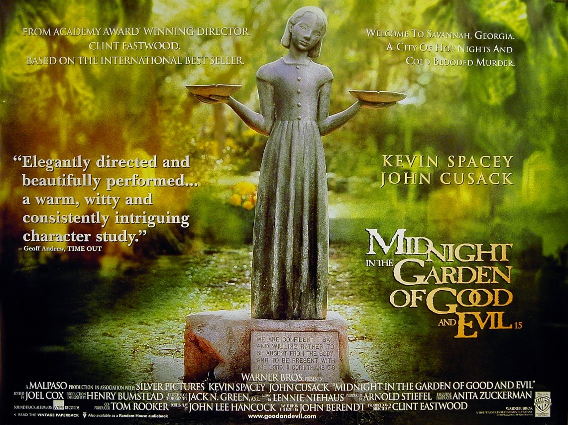 Original British 30 inch x 40 inch Quad Poster for the 1997 Clint Eastwood Crime Drama MIDNIGHT IN THE GARDEN OF GOOD AND EVIL starring John Cusack, Kevin Spacey, Jack Thompson, Jude Law, Alison Eastwood, Lady Chablis, Geoffrey Lewis and Bob Gunton.
