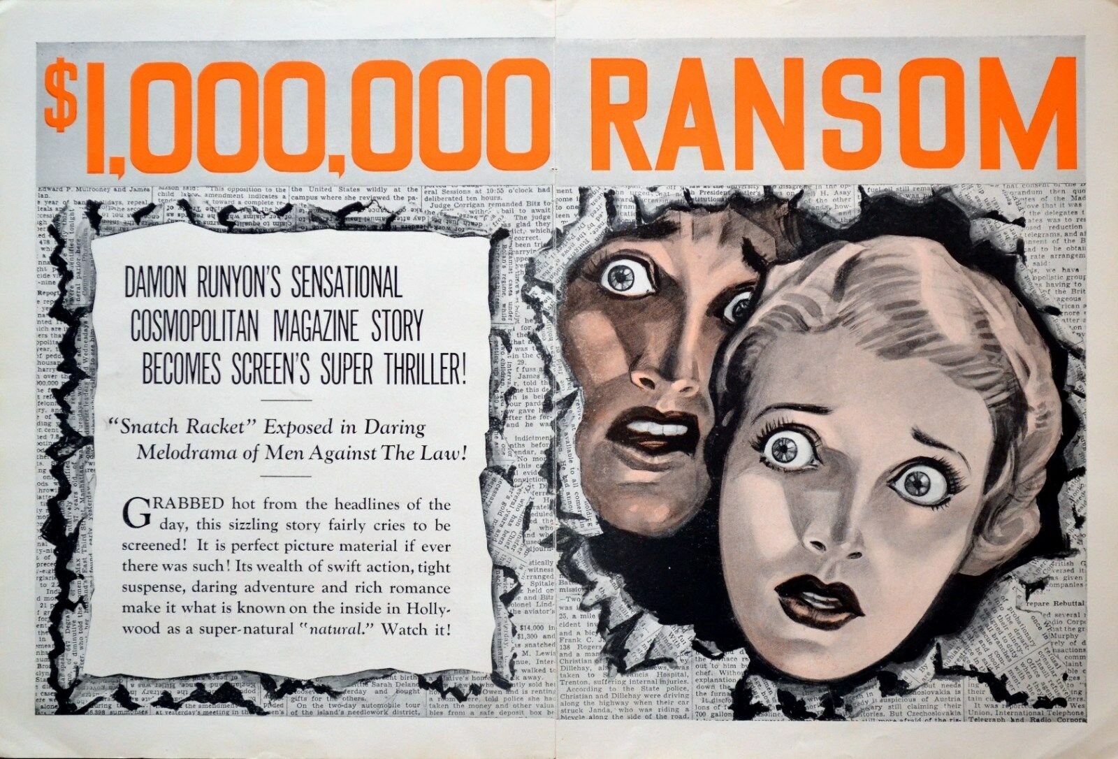 Original U.S. 18 inch x 12 inch Trade Advertisement for the 1934 Murray Roth Drama MILLION DOLLAR RANSOM, based on the story by Damon Runyon and starring Henry Kolker, Edward Arnold, Andy Devine, Phillips Holme and Mary Carlisle.