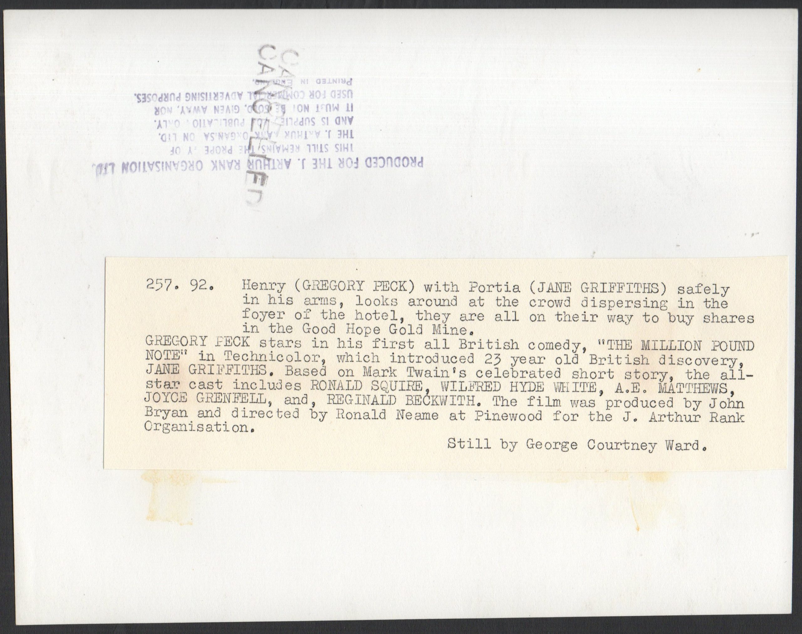 5 Original British 9 1/4 inch x 7 1/4 inch Stills for the 1954 Ronald Neame Comedy THE MILLION POUND NOTE, based on the novel by Mark Twain and starring Gregory Peck, Jane Griffiths, Joyce Grenfell, Ronald Squire, Wilfrid Hyde-White, A.E. Matthews and Hartley Power.