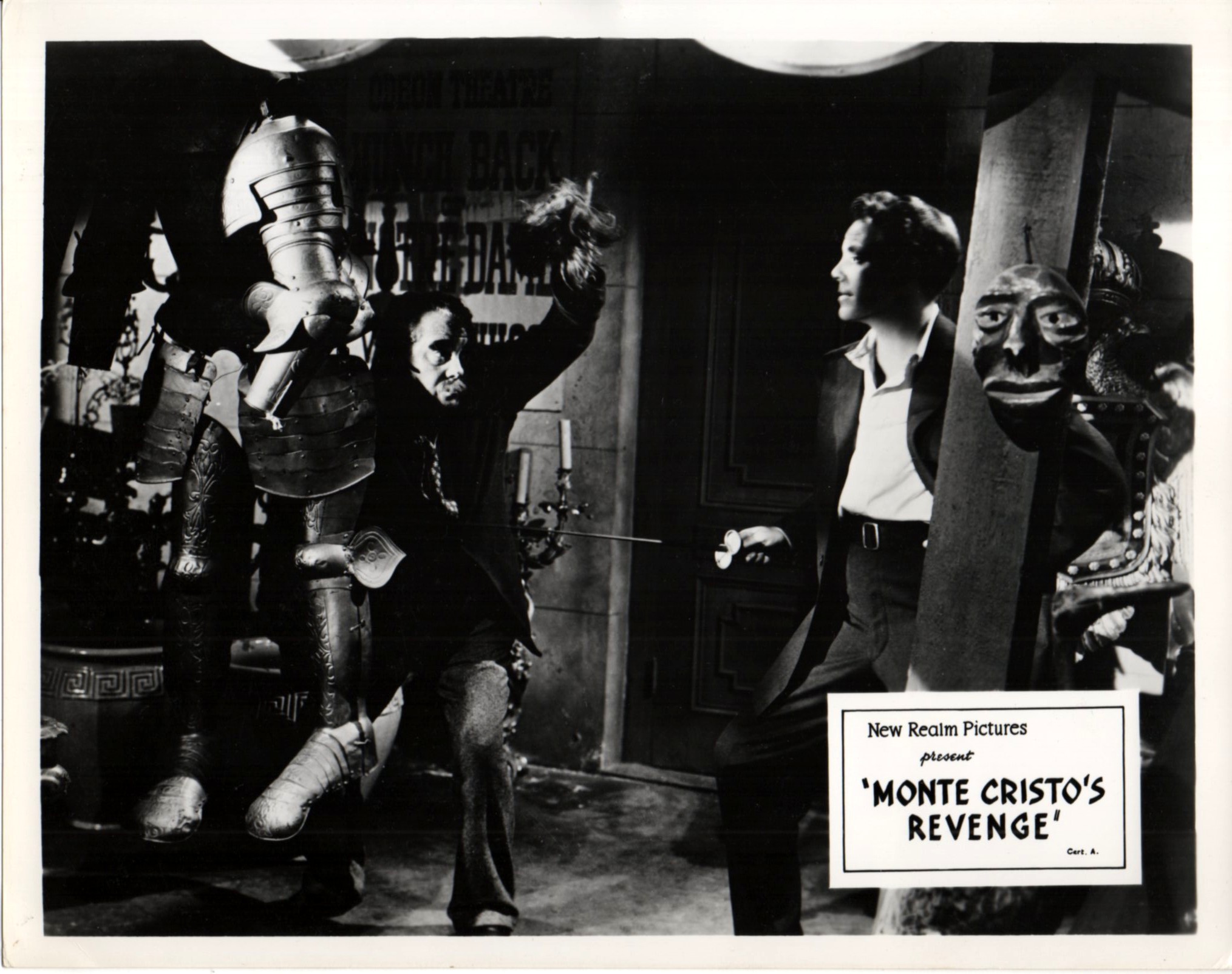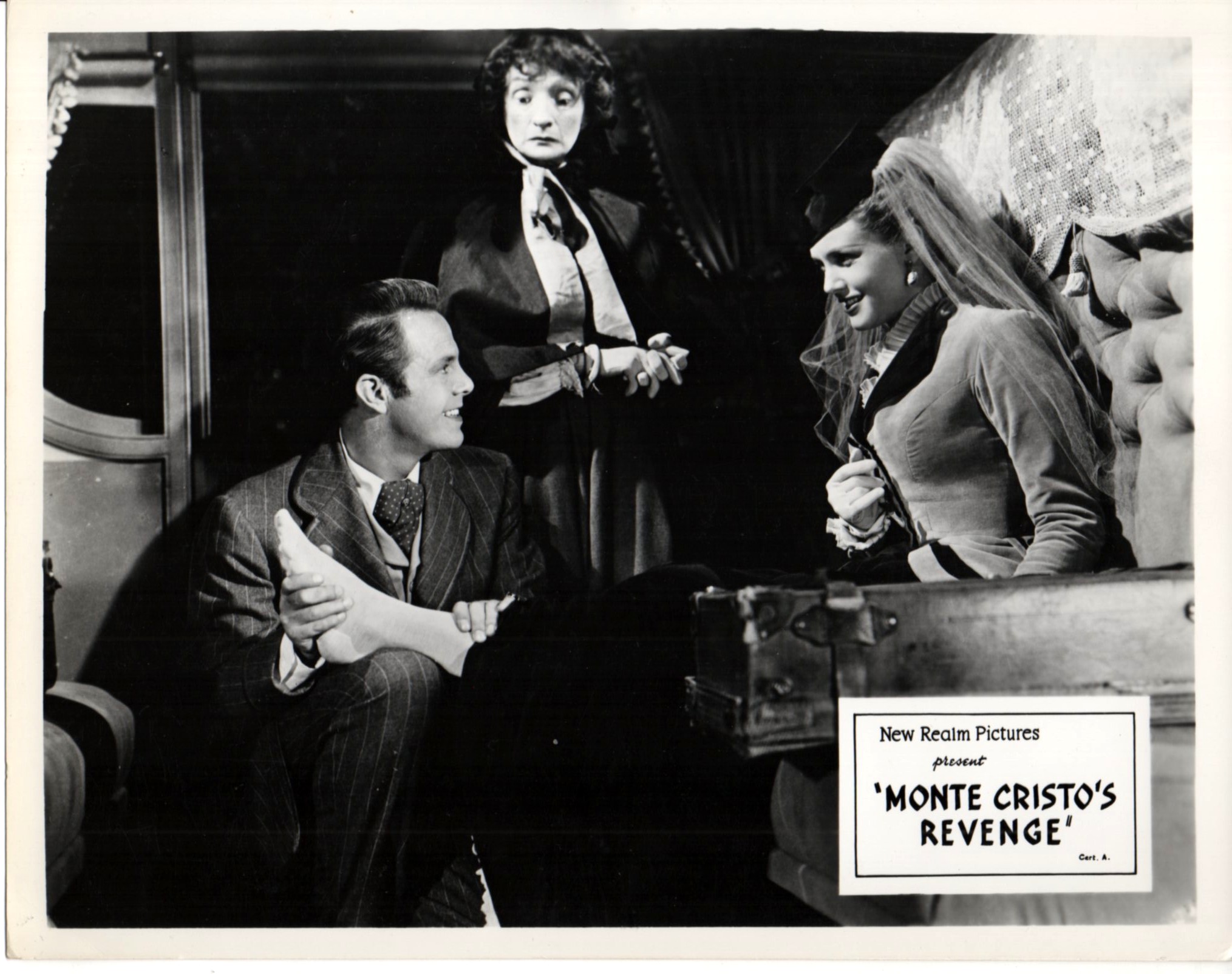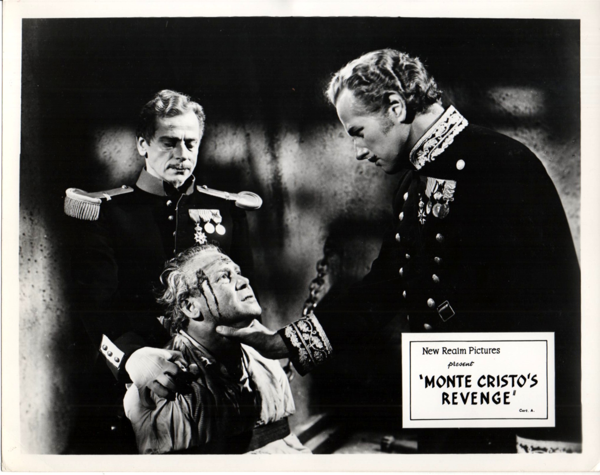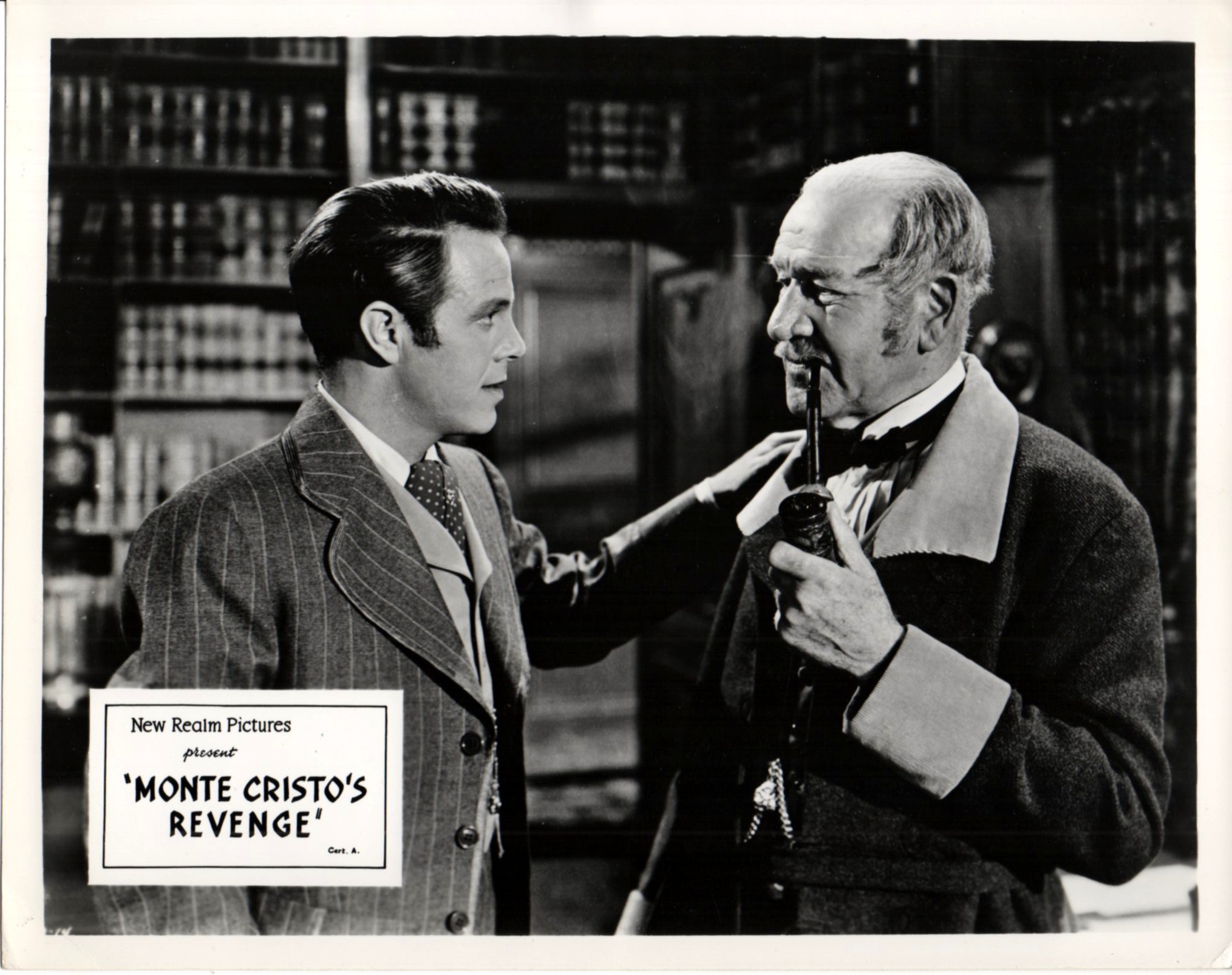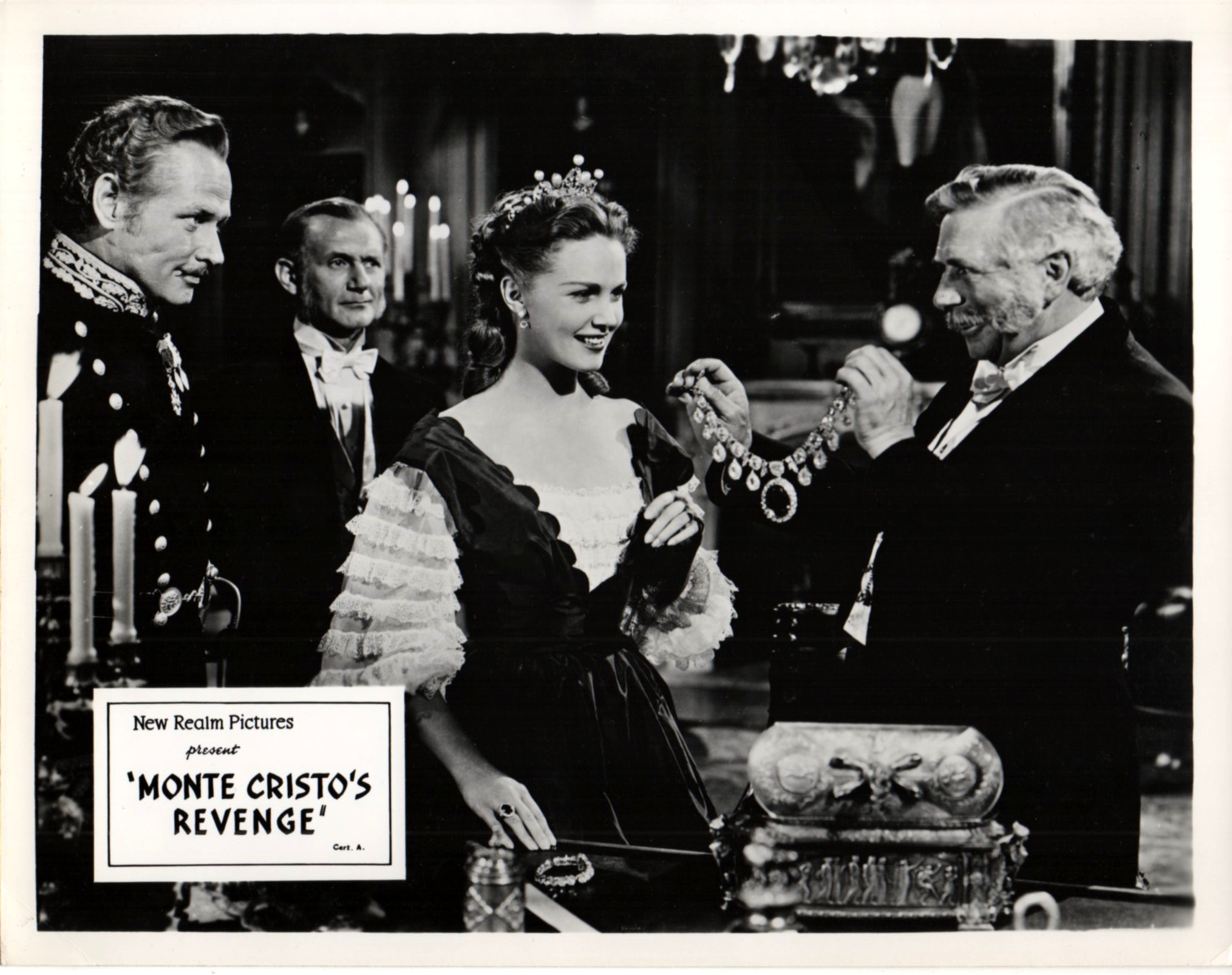 Original 1960s New Realm Re-Release British 10 inch by 8 inch Set of 8 Front-of-House Stills (Lobby Cards) for the 1946 Henry Levin Adventure MONTE CRISTO’S REVENGE (THE RETURN OF MONTE CRISTO) starring Louis Hayward, Barbara Britton, George Macready, Una O’Connor, Henry Stephenson, Steven Geray, Ray Collins and Ludwig Donath.