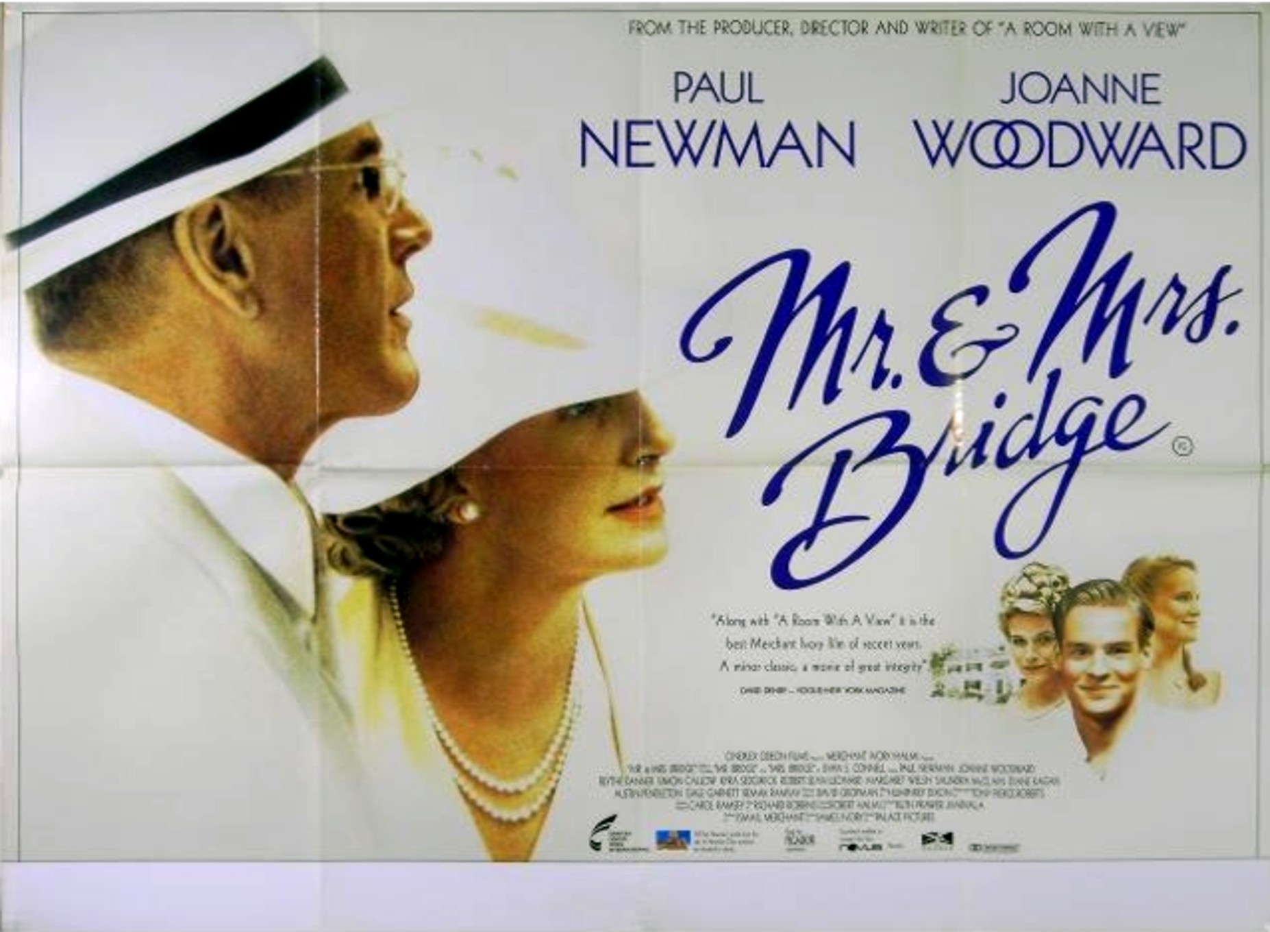 Original British 30 inch x 40 inch Quad Poster for the 1990 James Ivory Drama MR AND MRS BRIDGE starring Paul Newman, Joanne Woodward and Blythe Danner.
