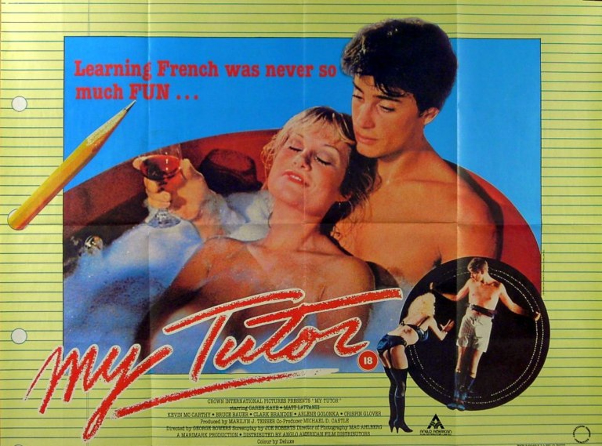Original British 30 inch x 40 inch Quad Poster for the 1983 George Bowers Comedy MY TUTOR starring Caren Kaye, Matt Lattanzi and Kevin McCarthy.
