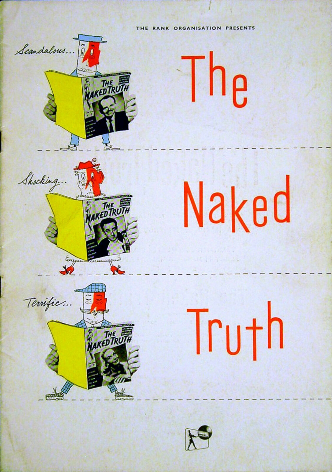 Original British 8 1/4 inch x 11 3/4 inch 12 Page Illustrated Brochure for the 1957 Mario Zampi Comedy THE NAKED TRUTH starring Terry-Thomas, Peter Sellers, Dennis Price, Peggy Mount, Shirley Eaton, Joan Sims, Miles Malleson, Kenneth Griffith, David Lodge and Peter Noble.