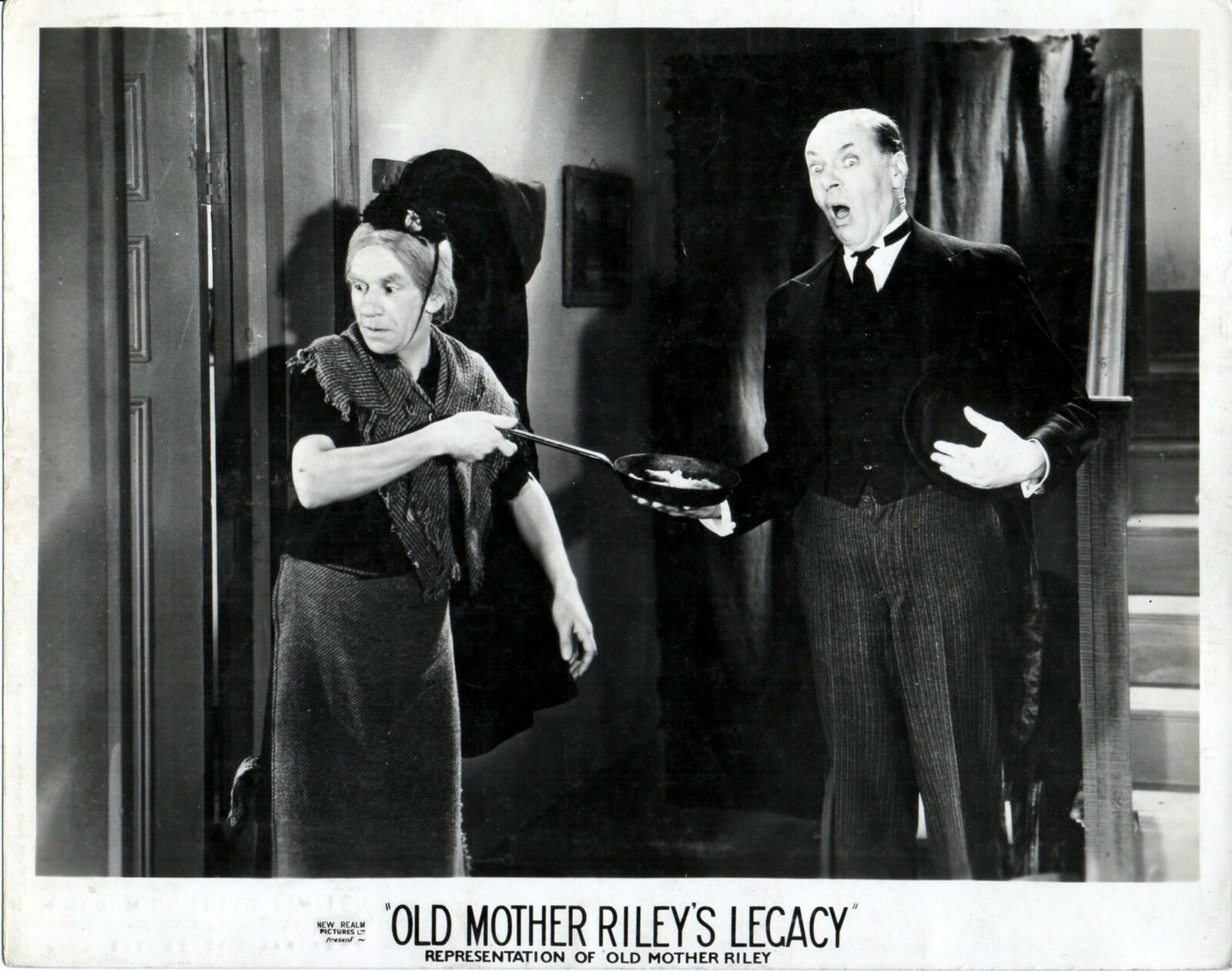 Original 1942 Re-Release British 10 inch by 8 inch Front-of-House Still (Lobby Card) for the 1937 Oswald Mitchell Comedy OLD MOTHER RILEY (OLD MOTHER RILEY’S LEGACY) starring Arthur Lucan and Syd Crossley.