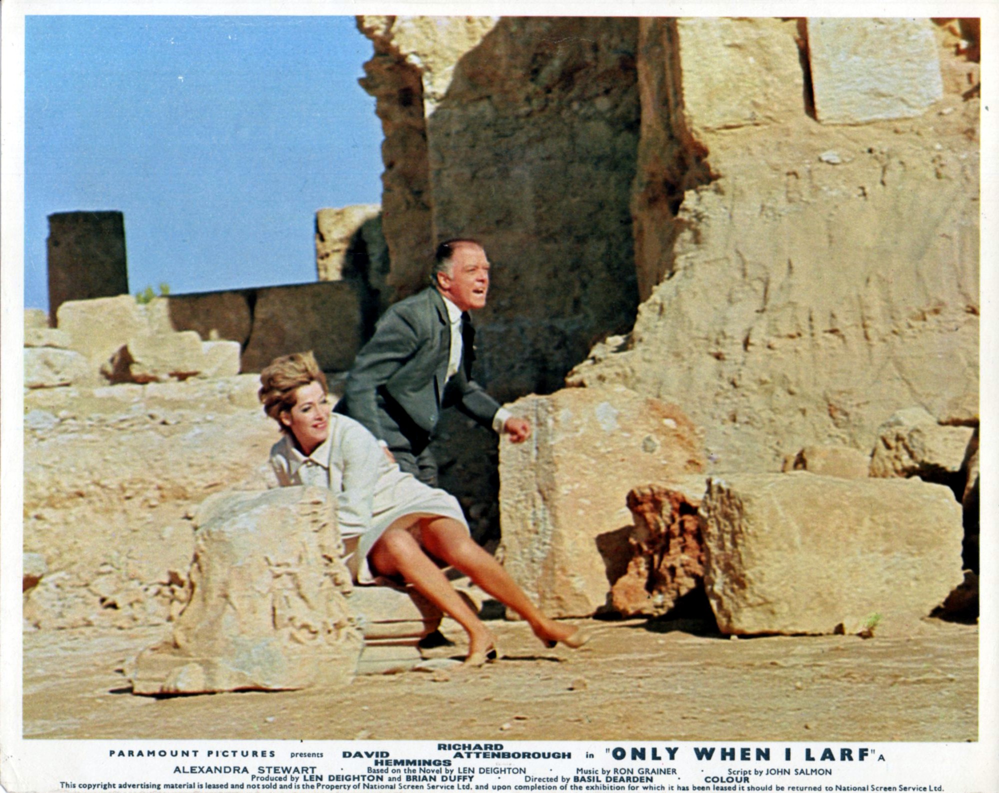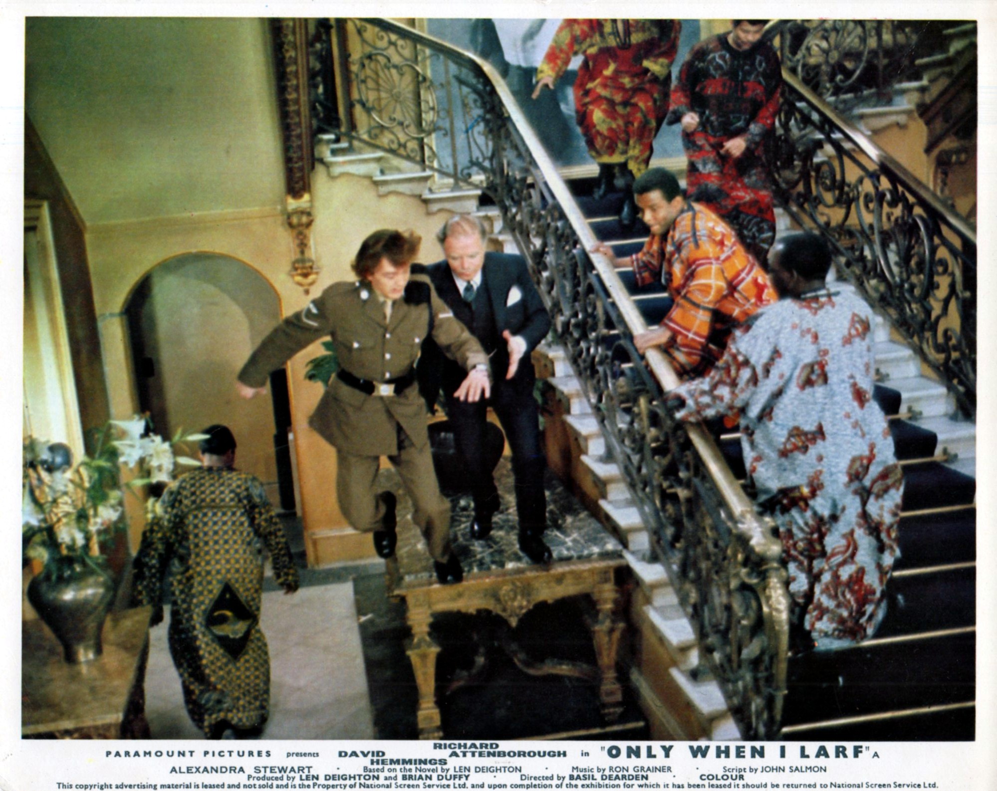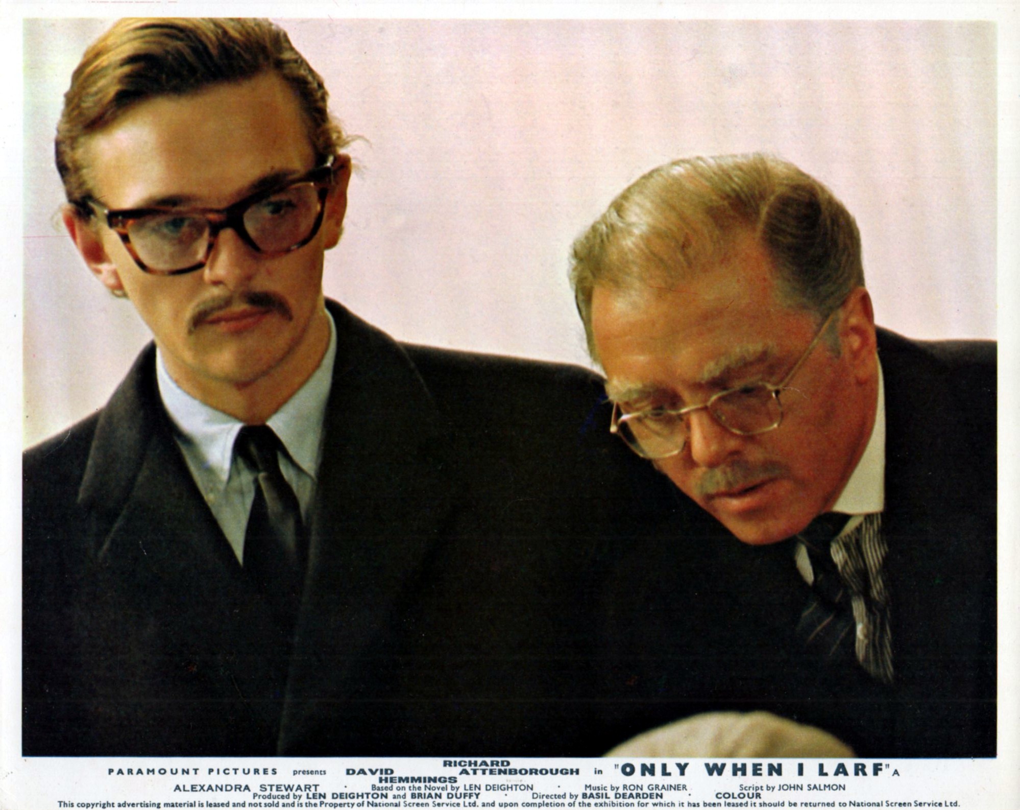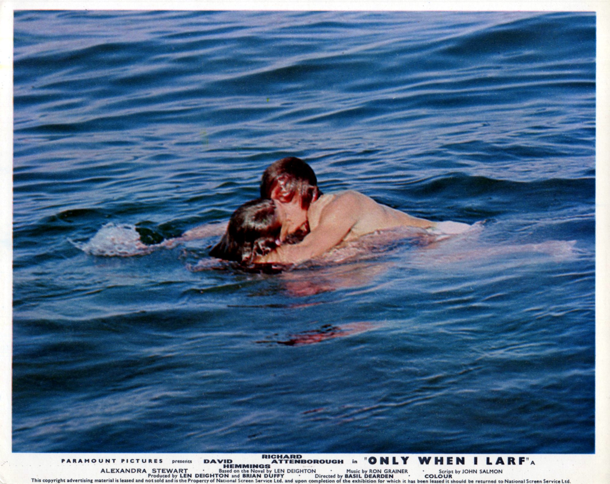 Original British 10 inch by 8 inch Set of 8 Front-of-House Stills (Lobby Cards) for the 1968 Basil Dearden Crime Comedy ONLY WHEN I LARF, based on the novel by Len Deighton and starring Richard Attenborough, David Hemmings and Alexandra Stewart.