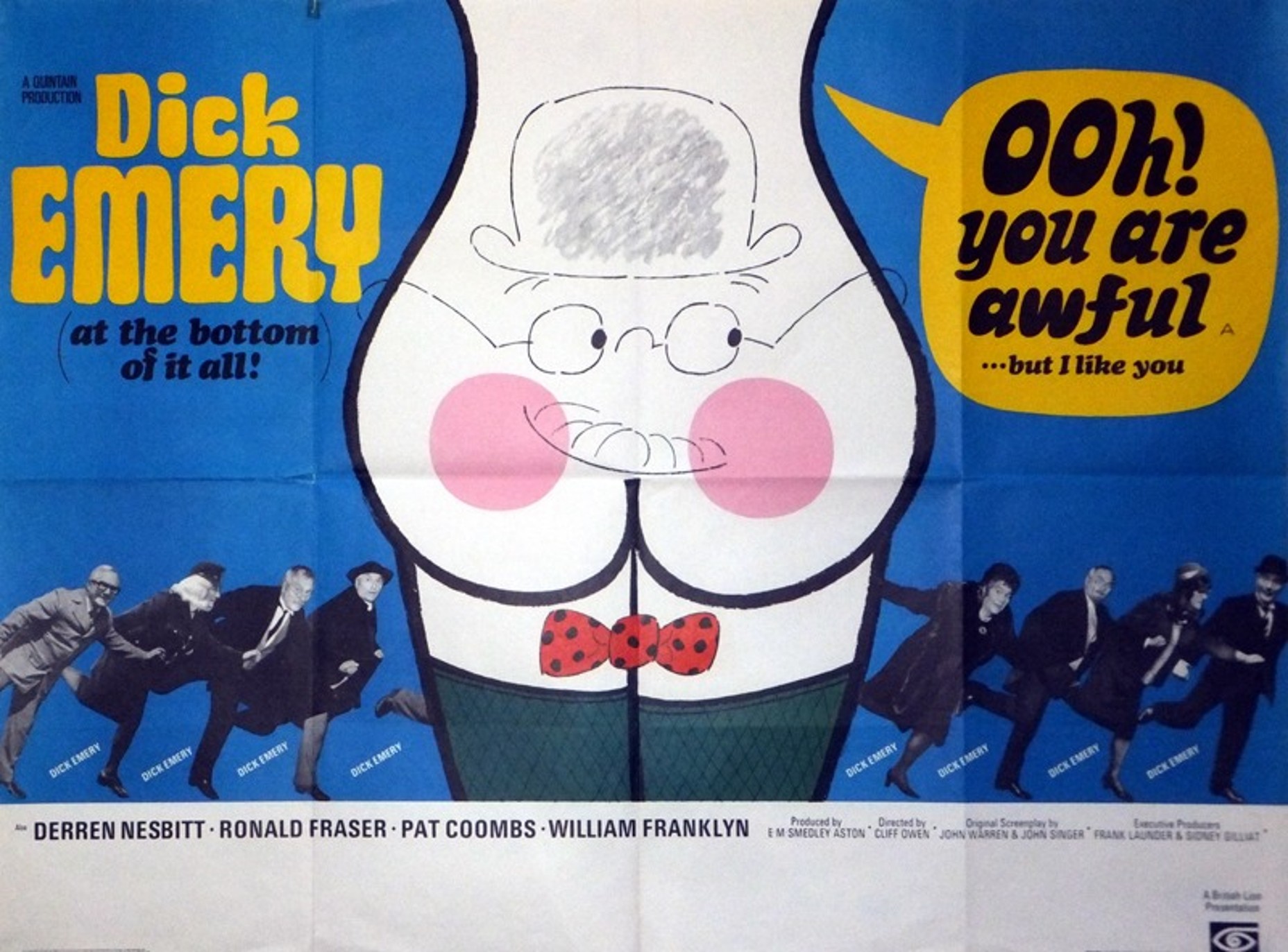 Original British 30 inch x 40 inch Quad Poster for the 1972 Cliff Owen Comedy OOH.. YOU ARE AWFUL… BUT I LIKE YOU starring Dick Emery, Derren Nesbitt, Ronald Fraser, Pat Coombs, William Franklyn and Cheryl Kennedy.