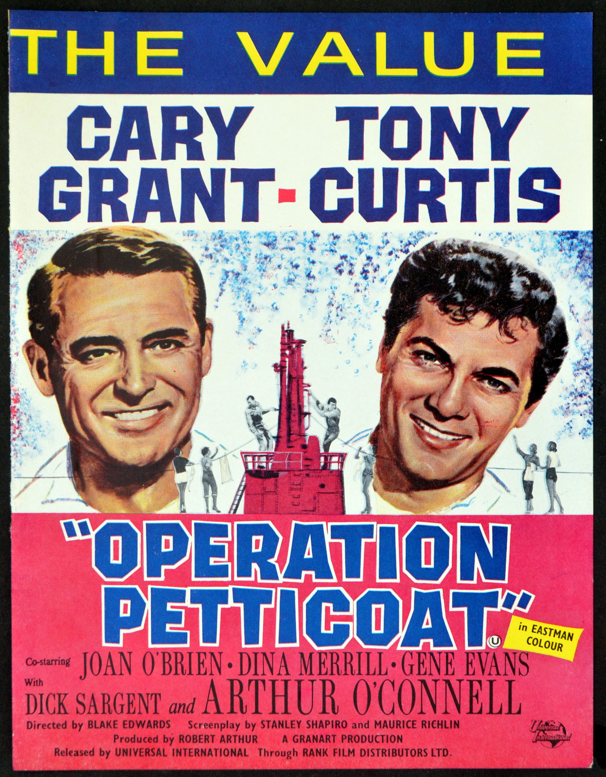 Original British 11 inch x 8 1/2 inch Advert from Kinematograph Weekly for the 1959 Blake Edwards Naval Comedy OPERATION PETTICOAT starring Cary Grant, Tony Curtis, Joan O’Brien, Dina Merrill, Gene Evans, Dick Sargent, Arthur O’Connell and Gavin MacLeod.